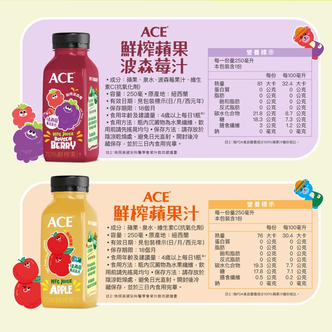 ACE - 鮮榨果汁|蘋果汁 (單入)-250ml