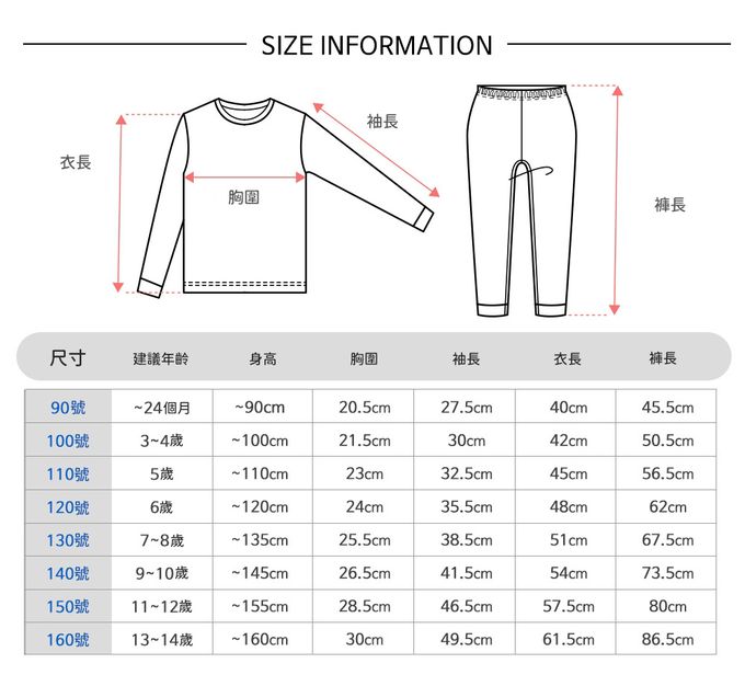 1. 尺寸表單位皆為公分(cm),實際尺寸會因布料彈性、水洗、測量起迄點等因素略有誤差。