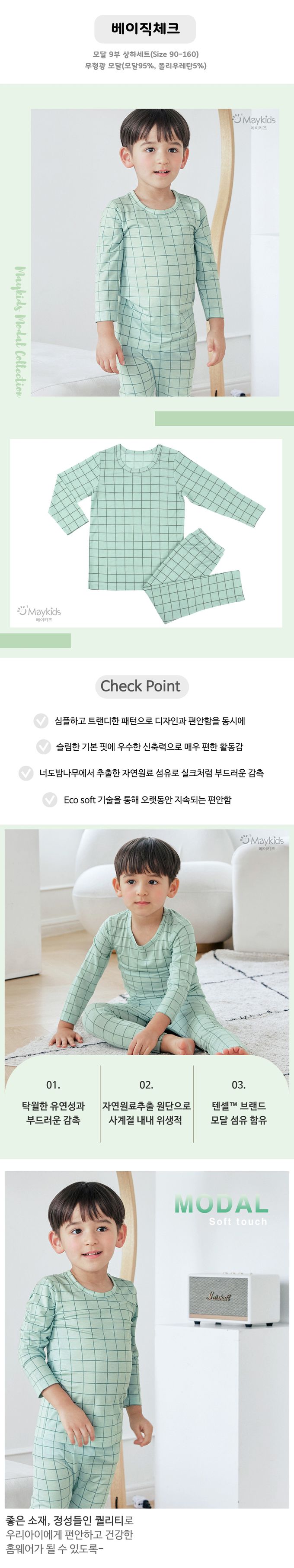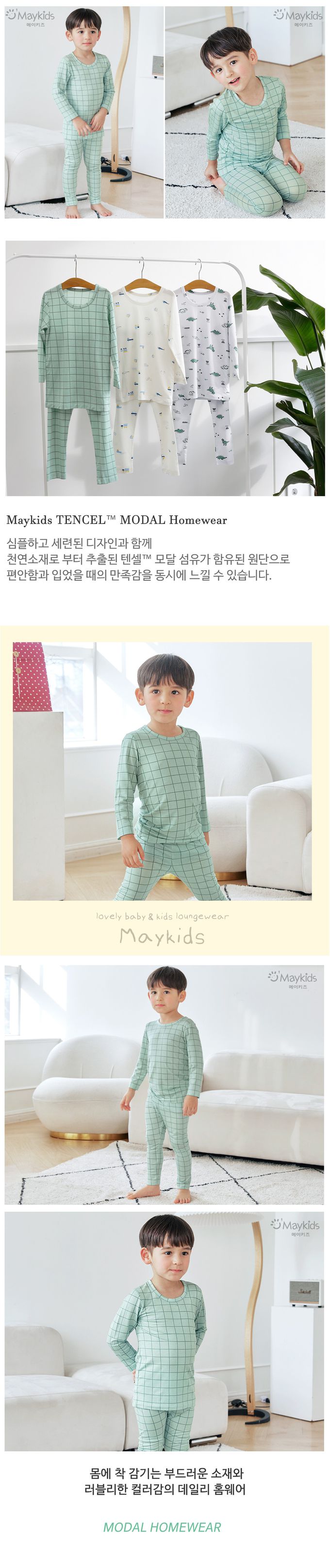 韓國 Maykids - 天絲莫代爾透氣長袖家居服-格紋-綠