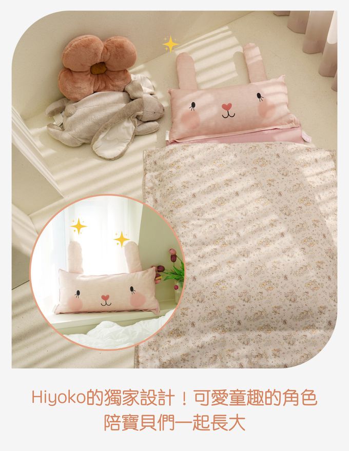 「Hiyokobaby」在韓國兒童寢具圈是以「高品質」累積了相當高的好評,為了寶貝們,只選用最柔軟、透氣的材質,讓寶貝不受環境溫度影響保有好的睡眠品質,獨創的造型圖案,讓午睡時間成為寶貝最期待的時光 ✧ 所有產品材質不但通過韓國KC驗證,也全是100%韓國手工製造!品質保證最安心~~~