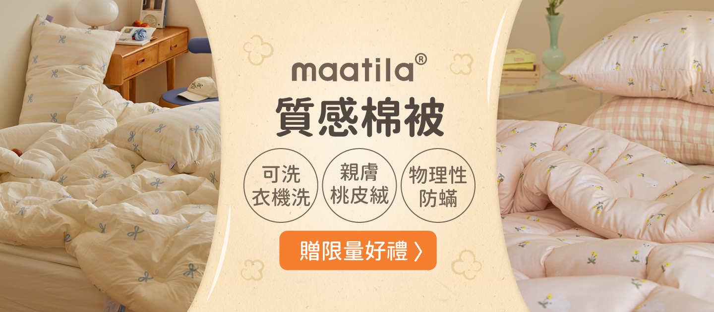 在季節交替之際,編媽決定來團購一下韓國的四季被!雙面都是非常柔軟的桃皮絨材質,鑽進被窩真的都不想出來啦 ><比起其他品牌,Maatila家的花色真的是長在編媽的審美上,素色款很有質感、印花款俏皮可愛!被子不只是被子,更是居家裝飾的元素之一 ❤ 讓生活更美好,從家開始!