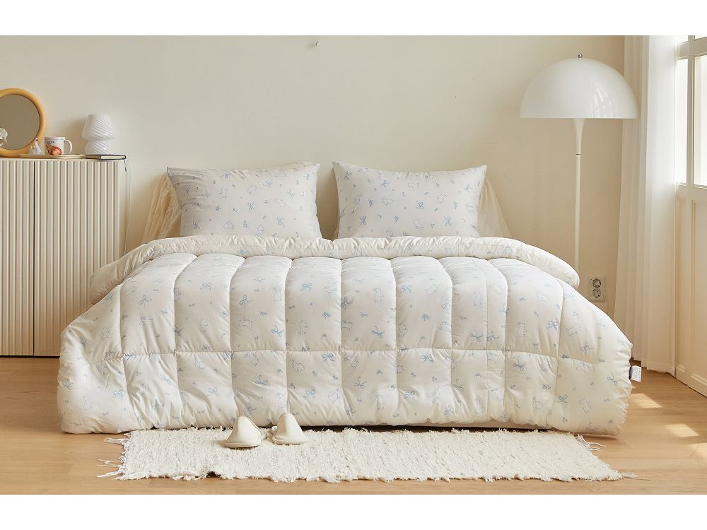 韓國 Maatila - 可水洗超細纖維桃皮感四季被-藍色鴨鴨 (雙人床[195X210cm] (含枕套X2))