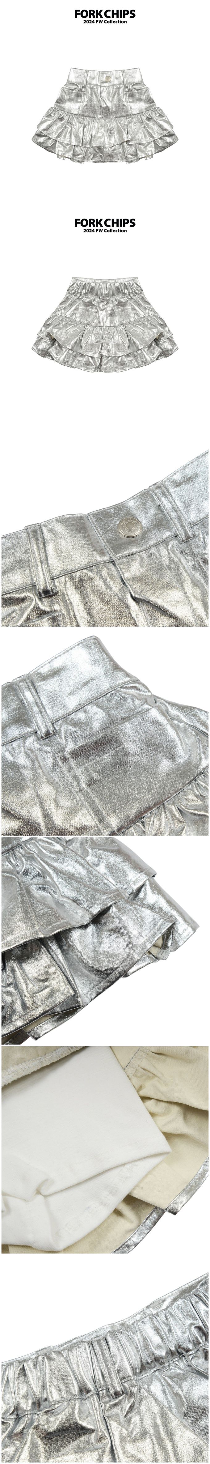 韓國 FORK CHIPS - 後鬆緊腰金屬感層次蛋糕褲裙-銀