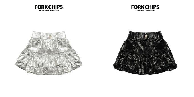 韓國 FORK CHIPS - 後鬆緊腰金屬感層次蛋糕褲裙