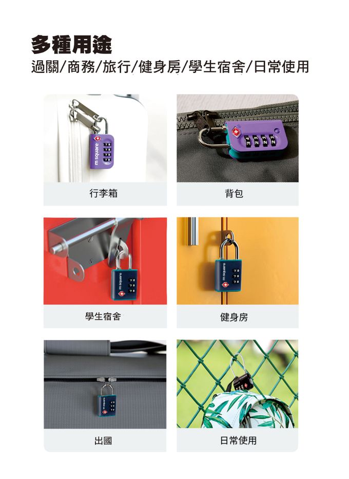 成分:TSA海關密碼鎖的特點之一是其可被海關人員使用專用工具進行開鎖檢查無需破壞行李鎖,這樣可以避免在安檢過程中破壞行李。 國際海關全球通用 鋅合金材質 輕巧便於攜帶 高強度鋼材製成,耐用且堅固不變形 旅行:適合用於旅行時鎖住行李箱、背包等,保護個人物品不被偷竊。 日常儲存:也可用於保護存放在倉庫、儲藏室或車庫中的物品。