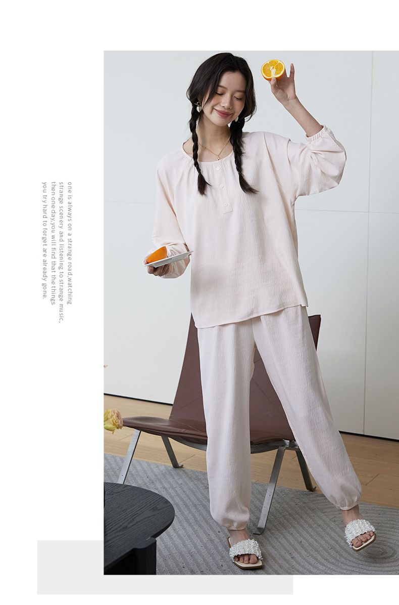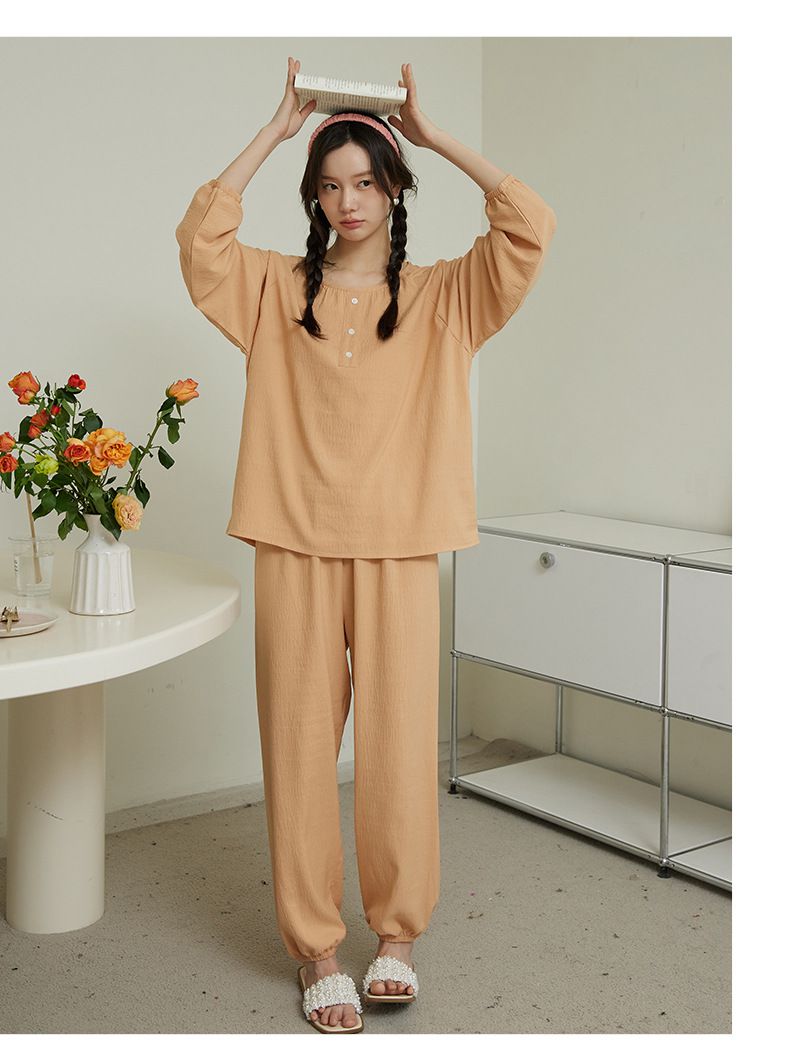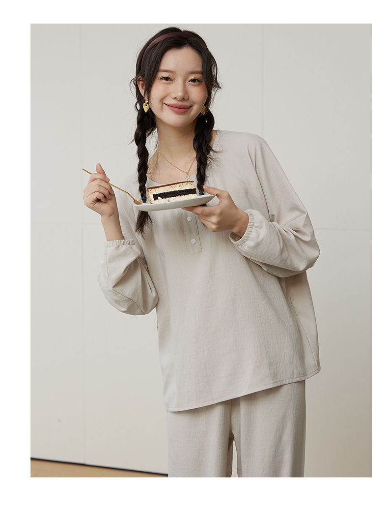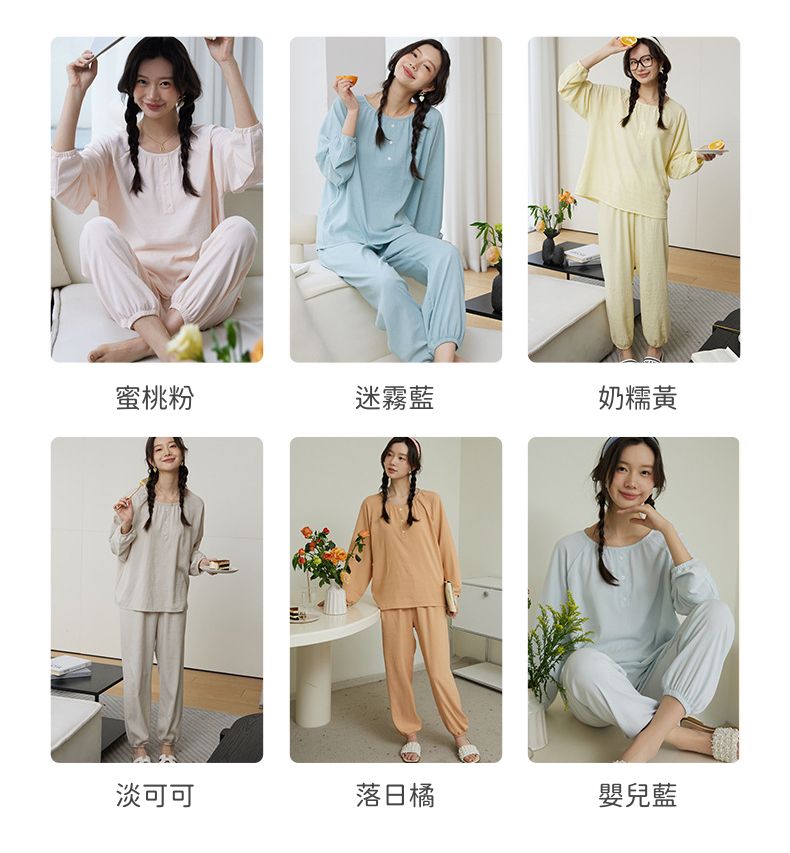 品名:雲柔感排釦裝飾長袖+長褲套裝