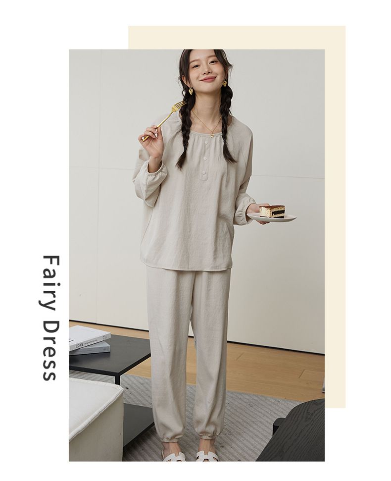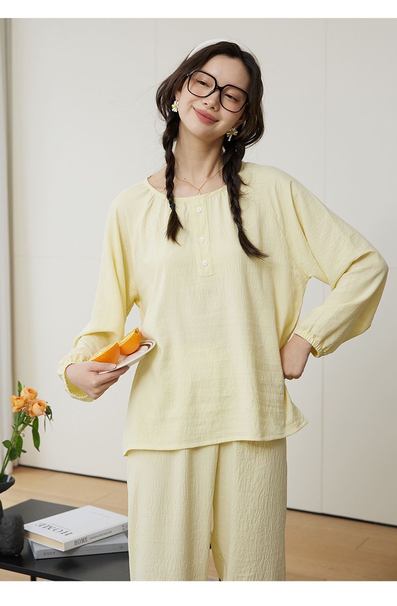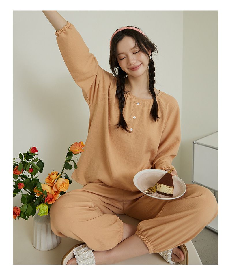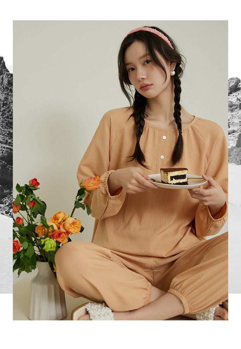 品名:雲柔感排釦裝飾長袖+長褲套裝