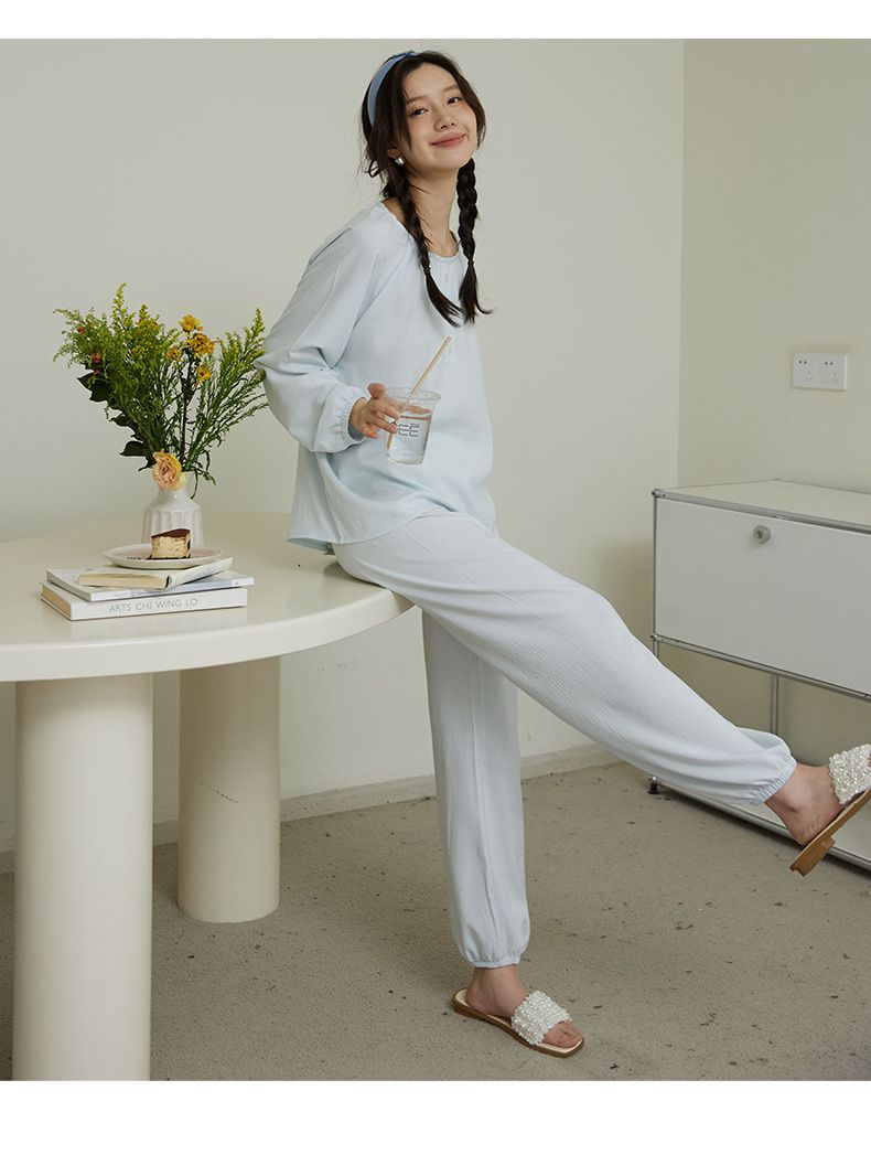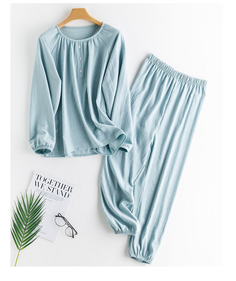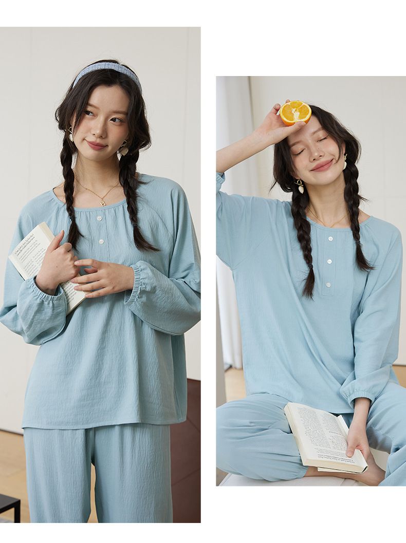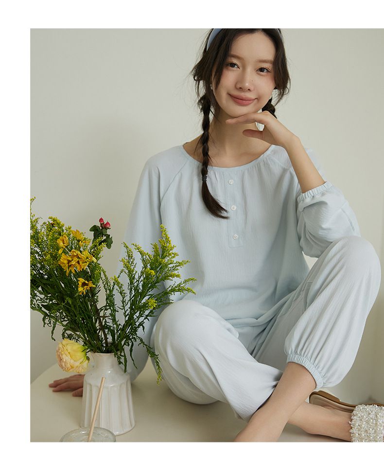 雲柔感排釦裝飾長袖+長褲套裝-嬰兒藍 (F)