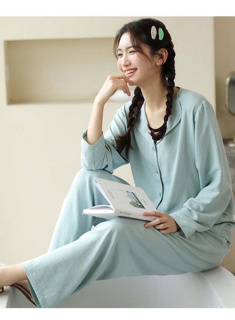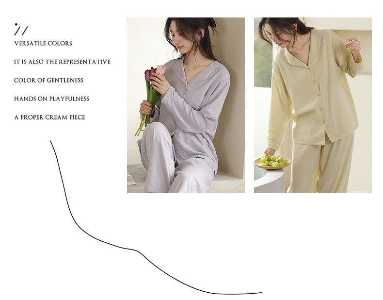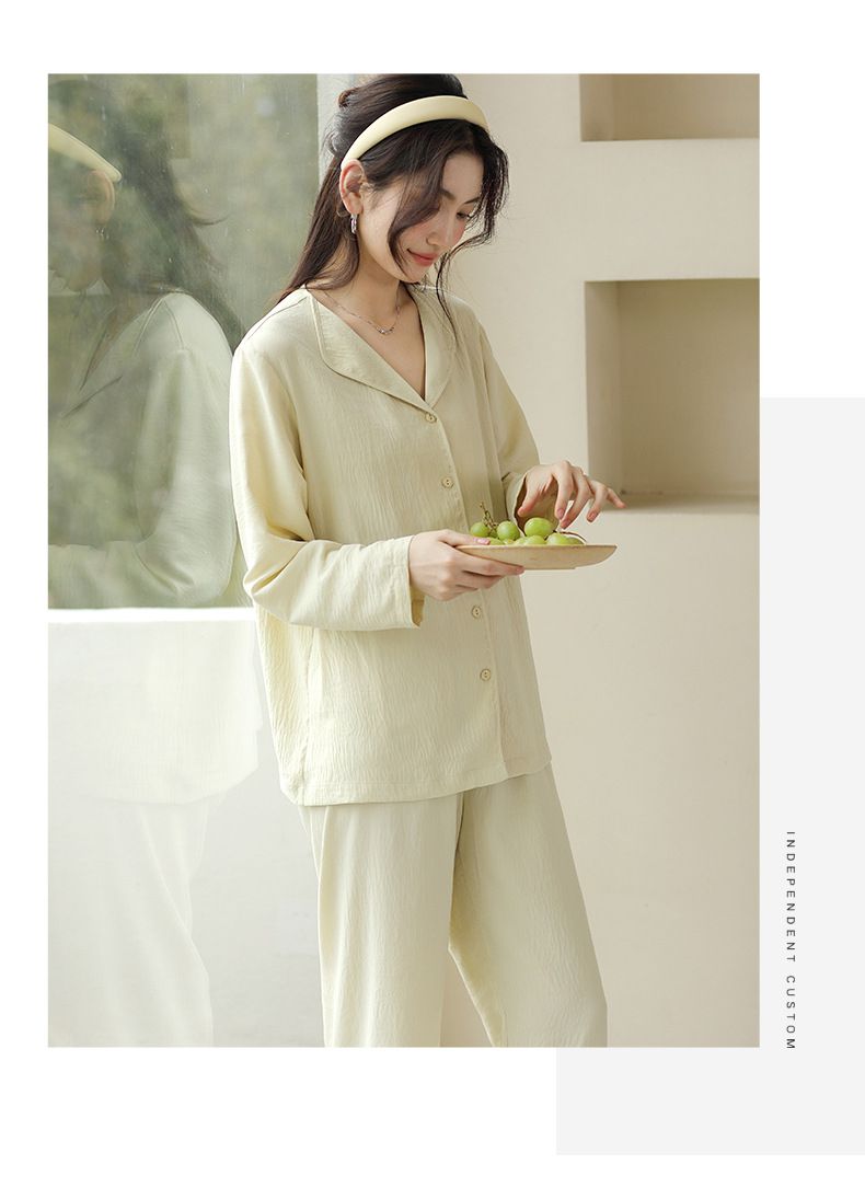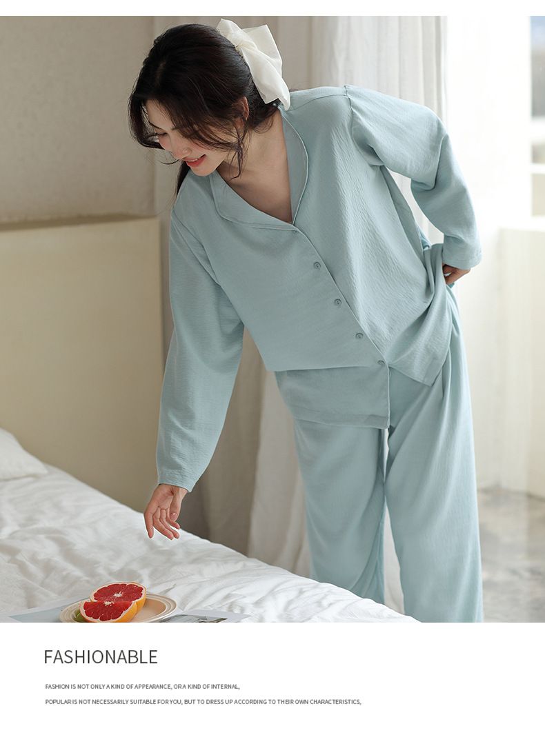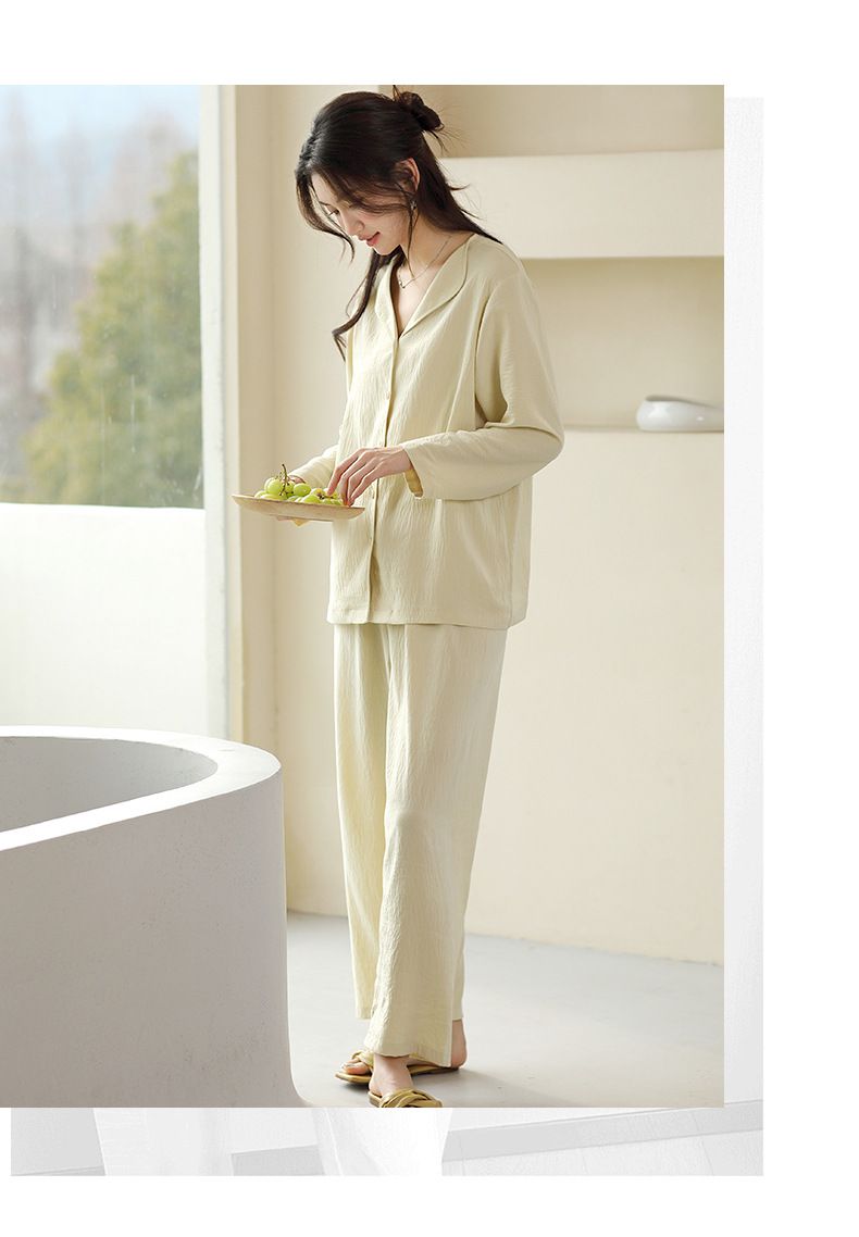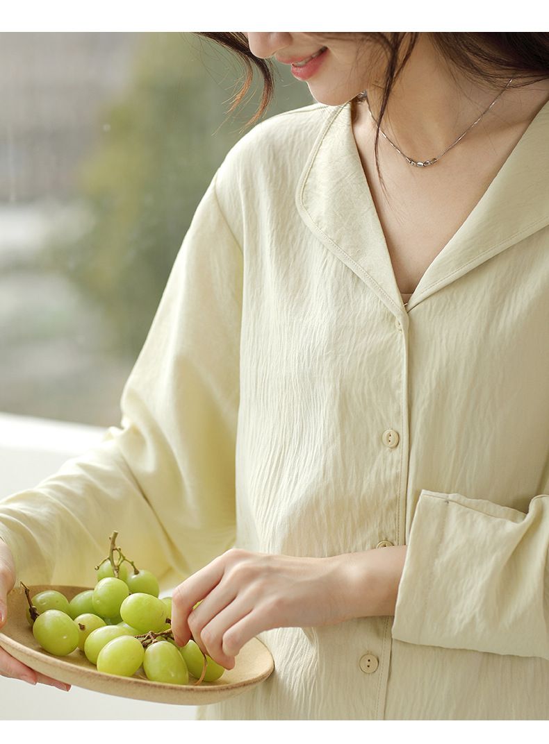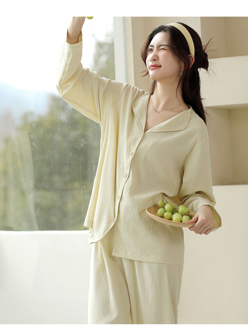 雲柔感質感翻領長袖+長褲套裝-仙粿粉 (F)