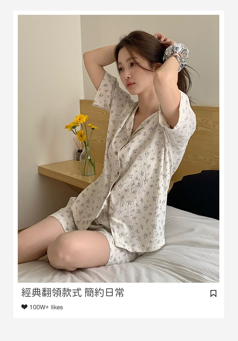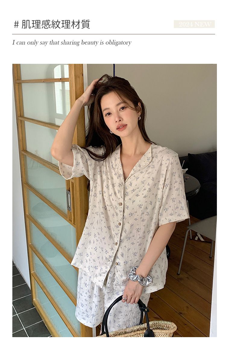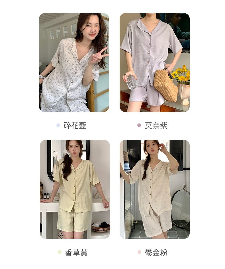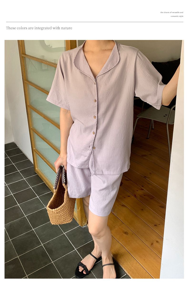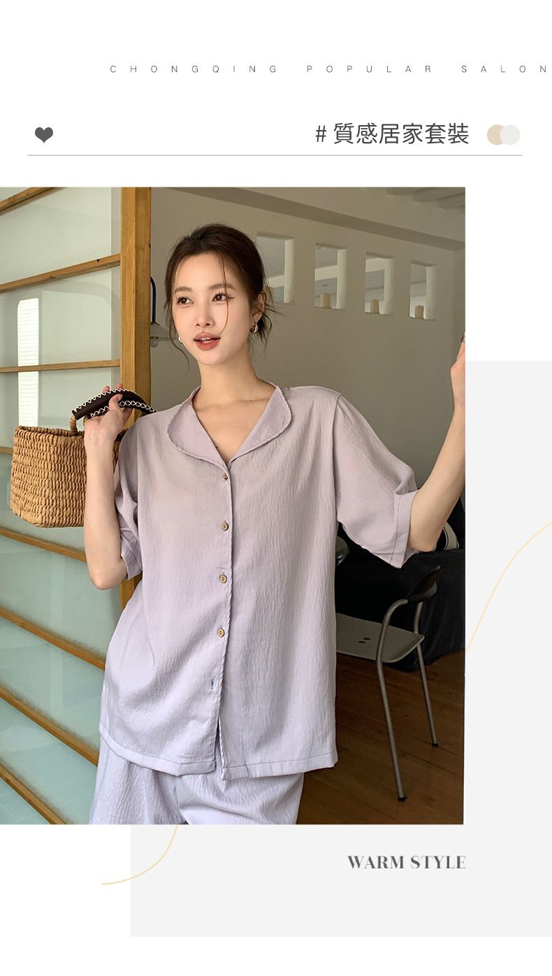 品名:雲柔感排釦裝飾五分袖+短褲套裝