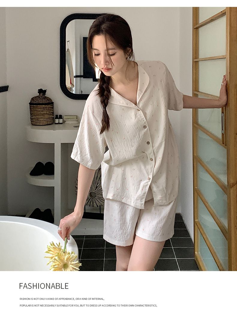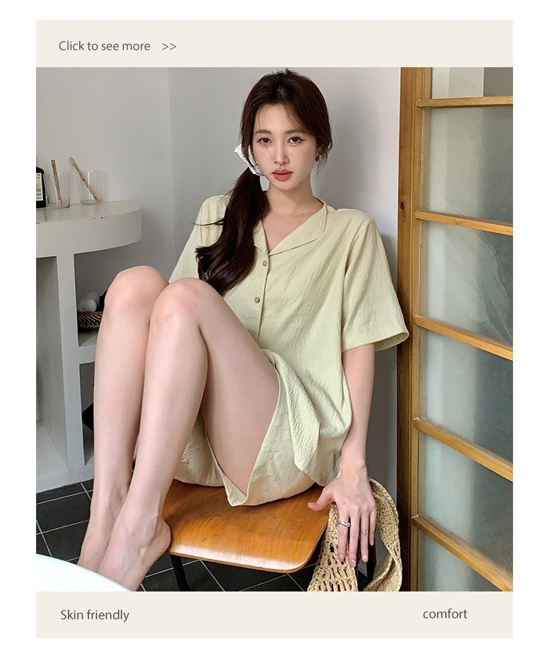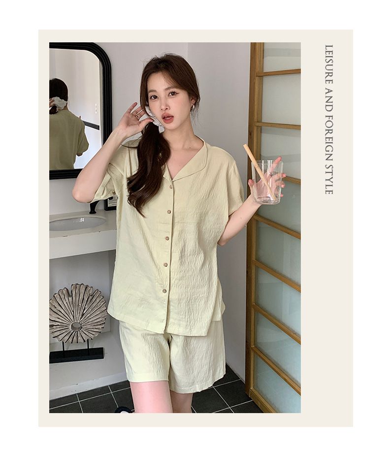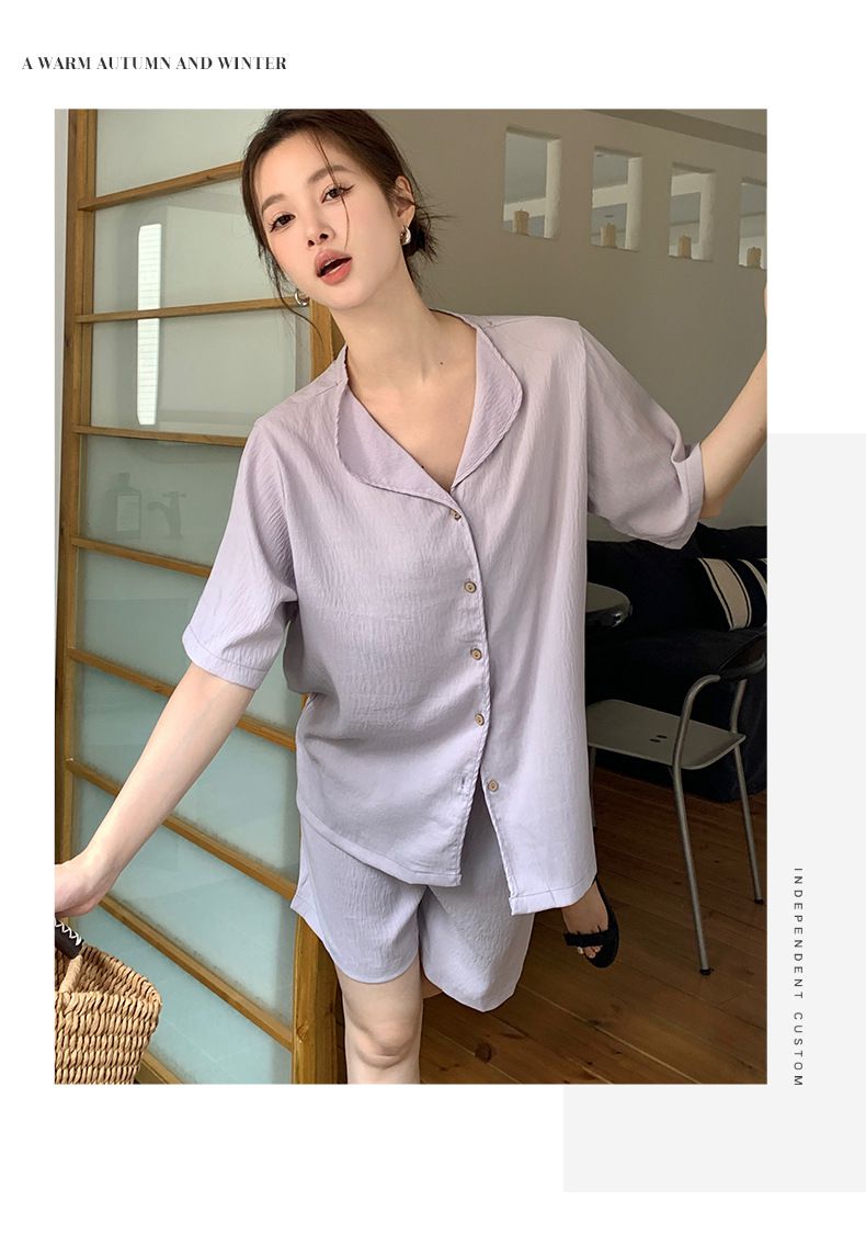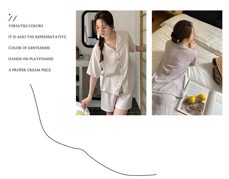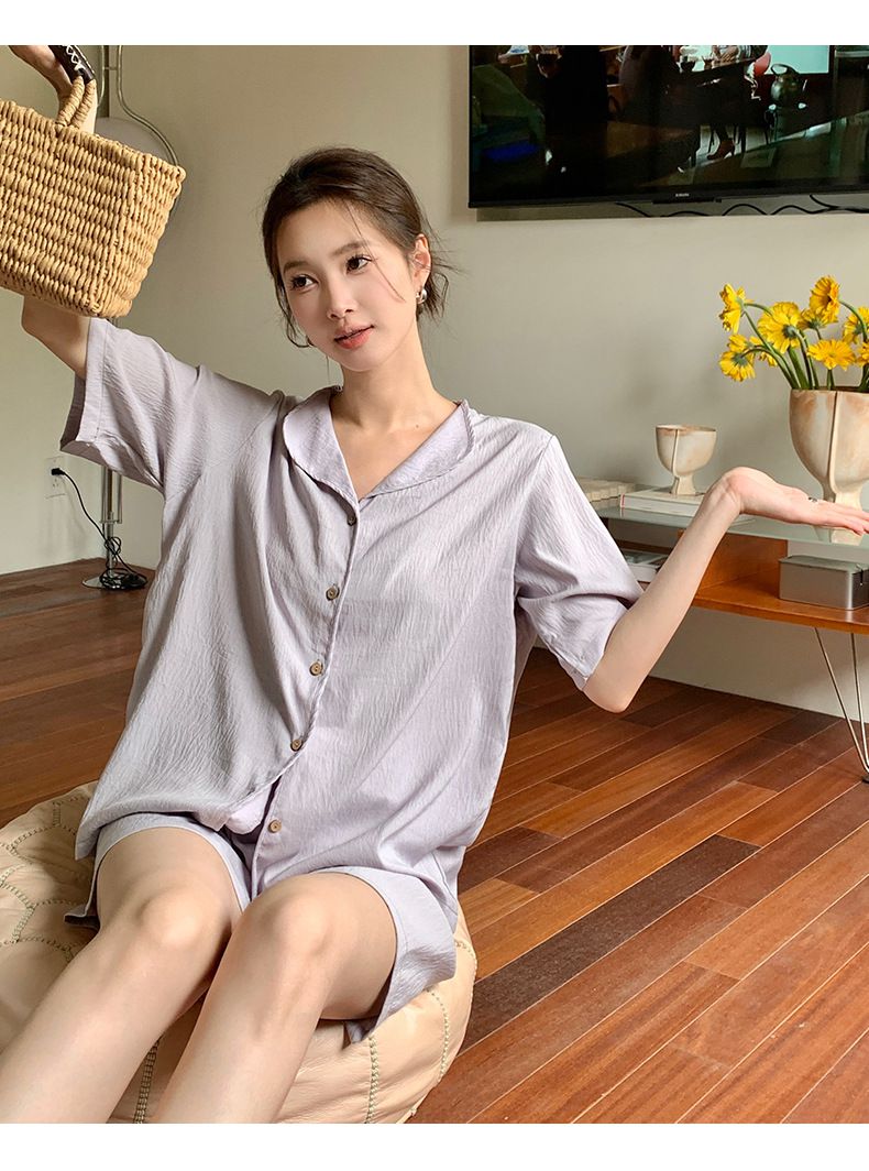 品名:雲柔感排釦裝飾五分袖+短褲套裝