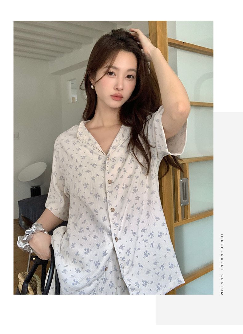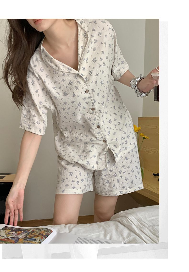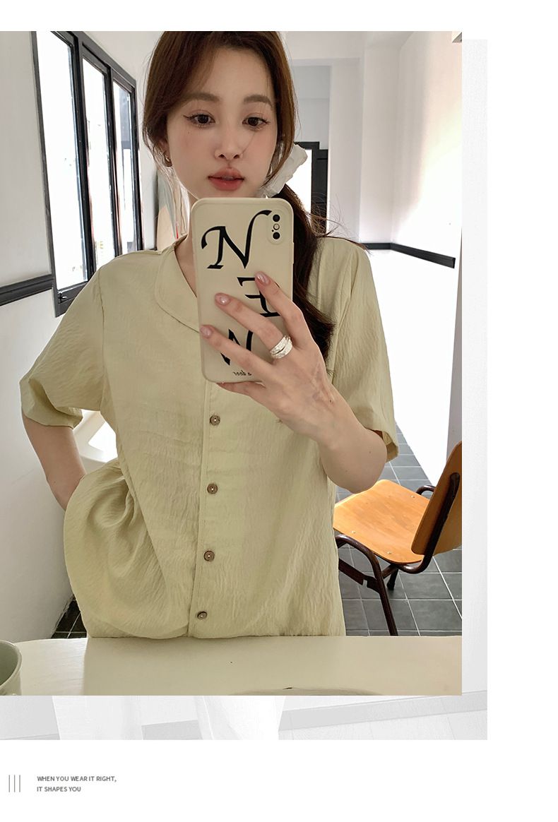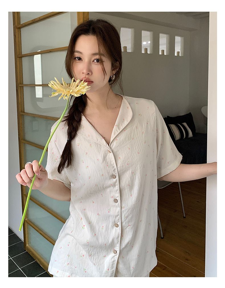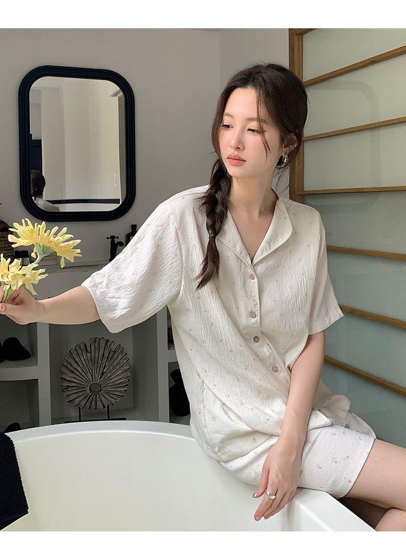 品名:雲柔感排釦裝飾五分袖+短褲套裝