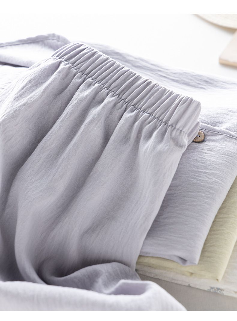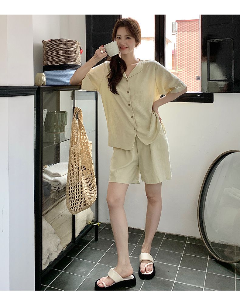 雲柔感排釦裝飾五分袖+短褲套裝-香草黃 (F)