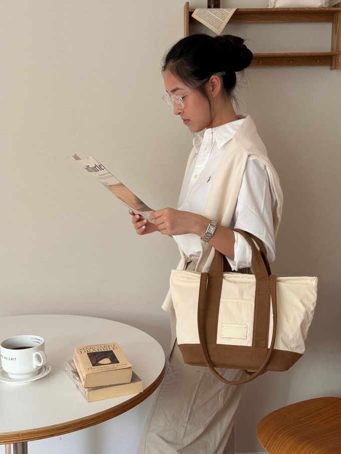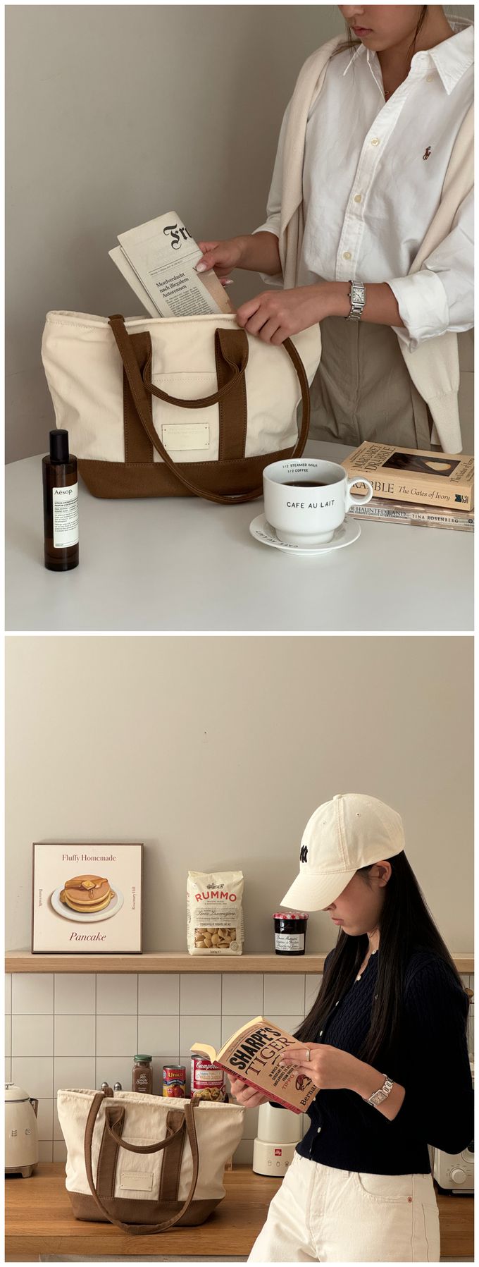 韓國 THEALLY - 大容量帆布手提/斜背包-深咖啡