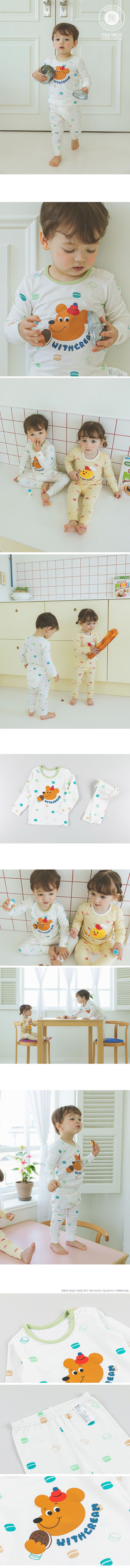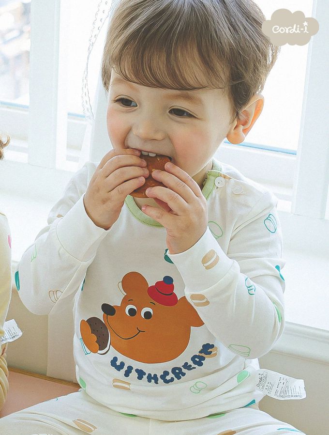 韓國 Cordi-i - 無螢光棉薄款彈性長袖家居服-甜點棕熊-白