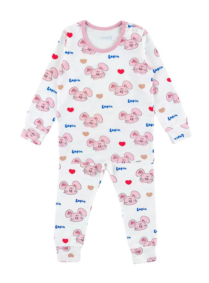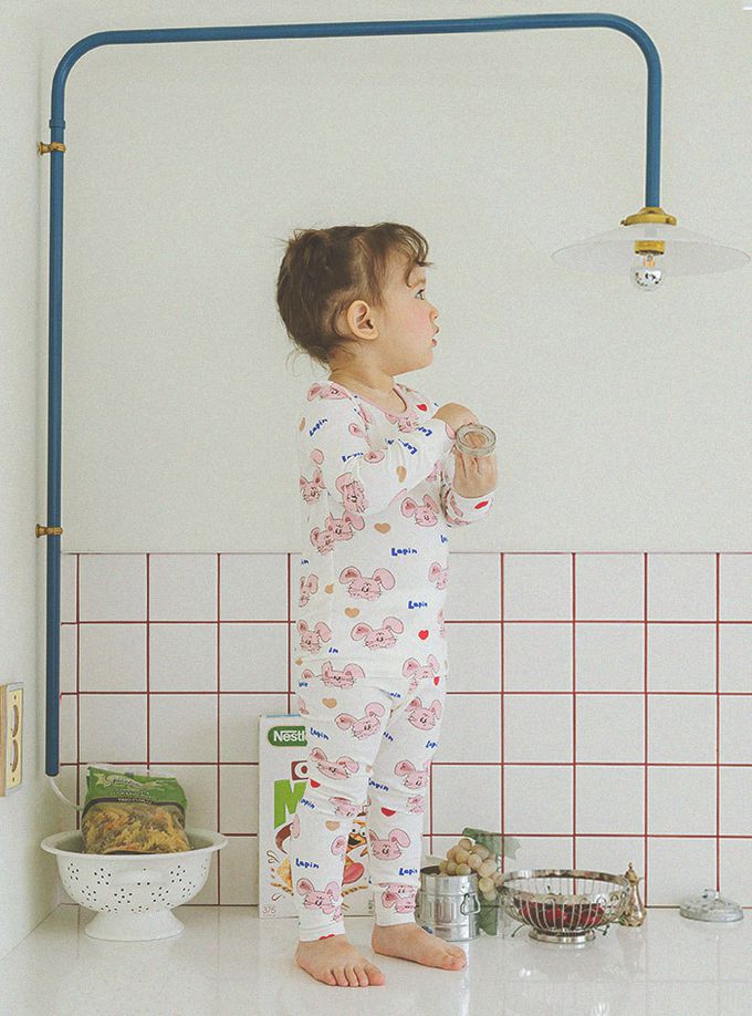 韓國 Cordi-i - 無螢光棉薄款彈性長袖家居服-粉兔蘿蔔-米X粉