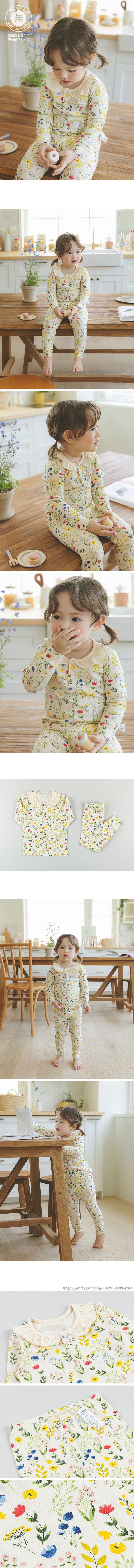 韓國 Cordi-i - 無螢光棉薄款彈性長袖家居服-童話花園-米黃