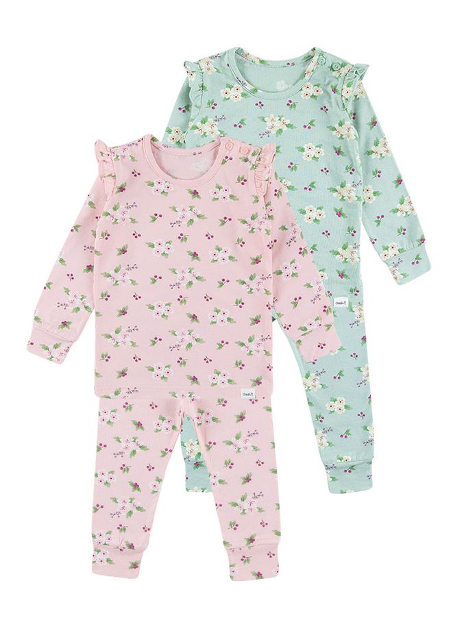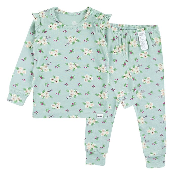 韓國 Cordi-i - 無螢光棉薄款彈性長袖家居服-櫻花綻放-湖水綠