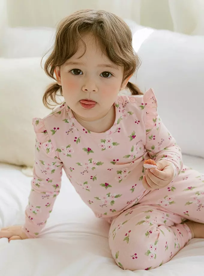 韓國 Cordi-i - 無螢光棉薄款彈性長袖家居服-童話花園-米黃