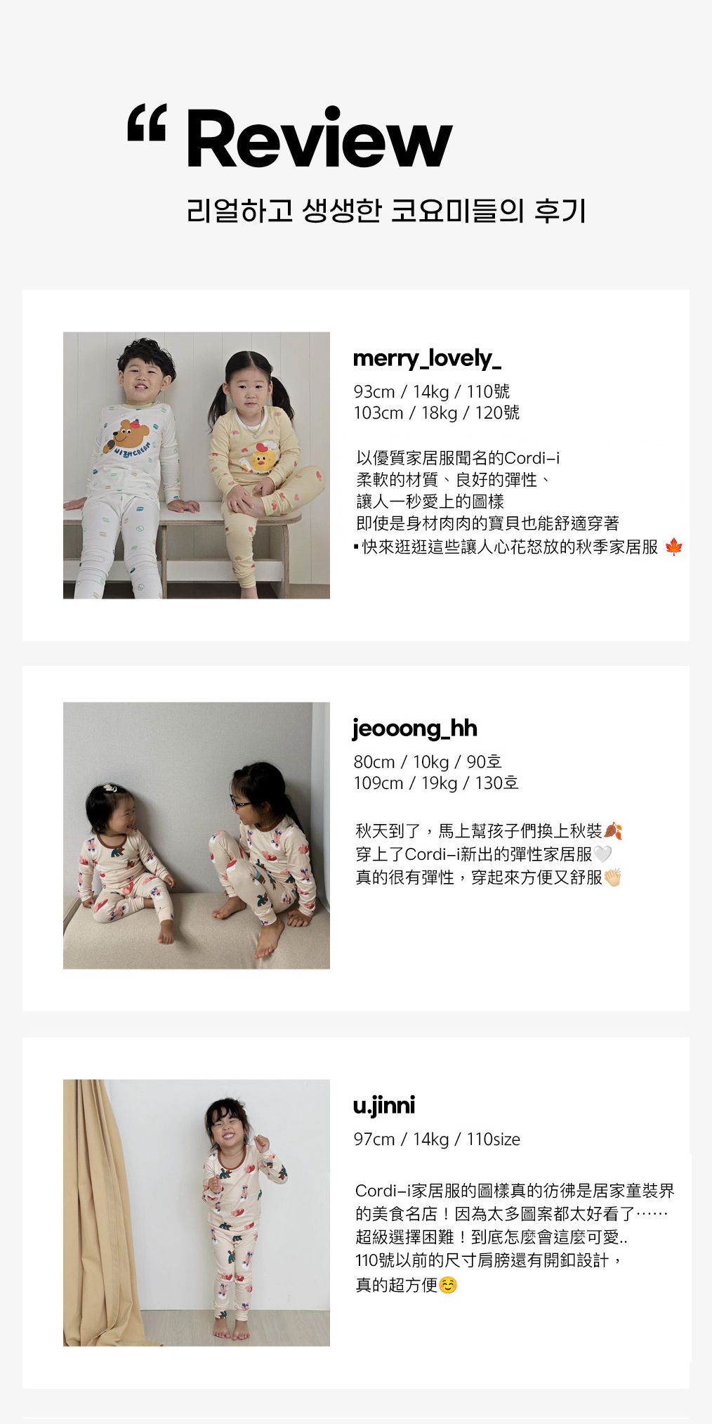 每次 Cordi-i 出新款式,就有許多韓國媽咪立刻幫家中寶貝們換季~而且韓國媽咪們不但對他們家的衣服品質給予肯定,也對 Cordi-i 各種可愛的圖樣心花怒放、選擇困難~