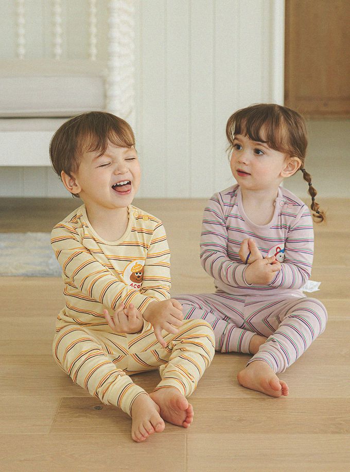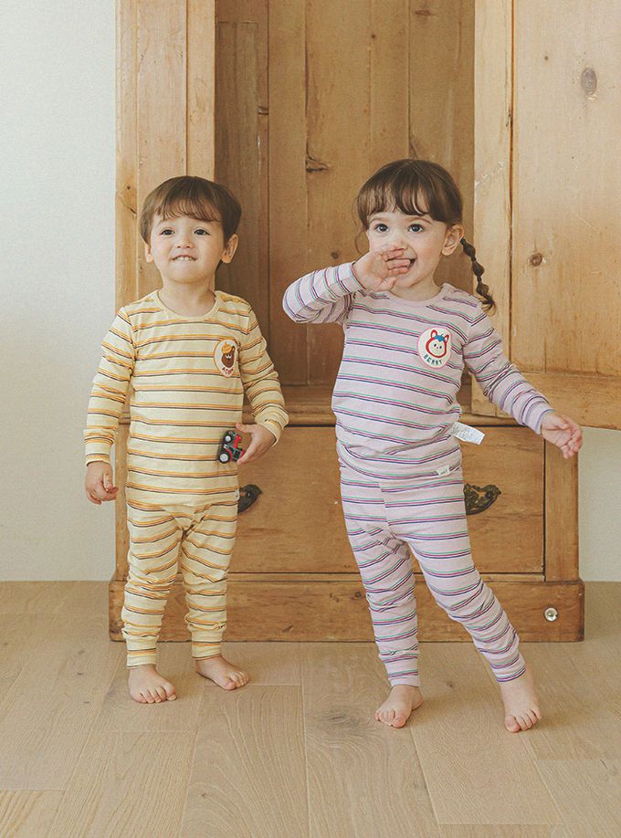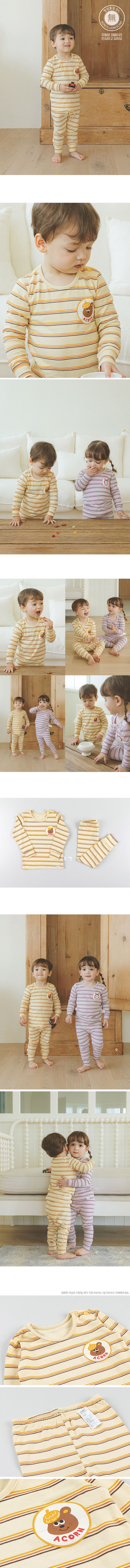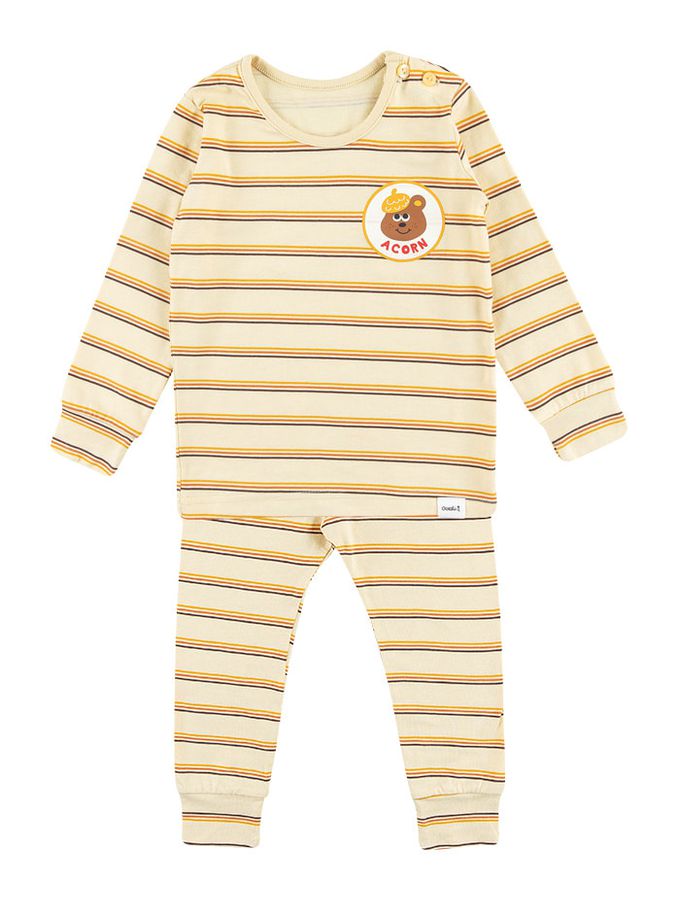 韓國 Cordi-i - 無螢光棉薄款彈性長袖家居服-橡實動物-淺黃