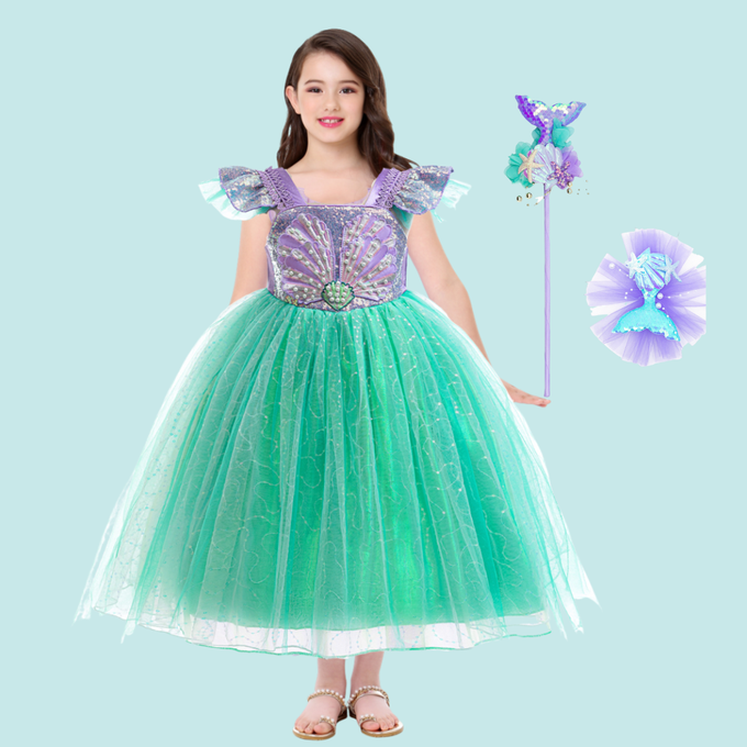 氣質美人魚公主蓬裙洋裝-獨家送魚尾髮夾+仙女棒
