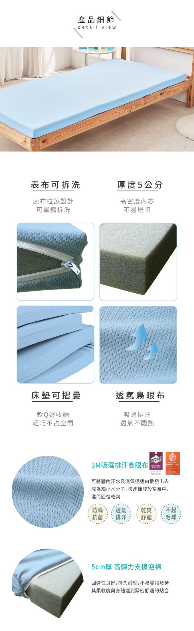 成分:高彈力減壓支撐棉床墊 90x186x5cm 內填 高彈力支撐棉