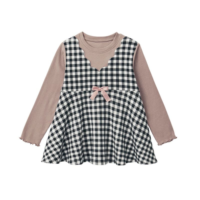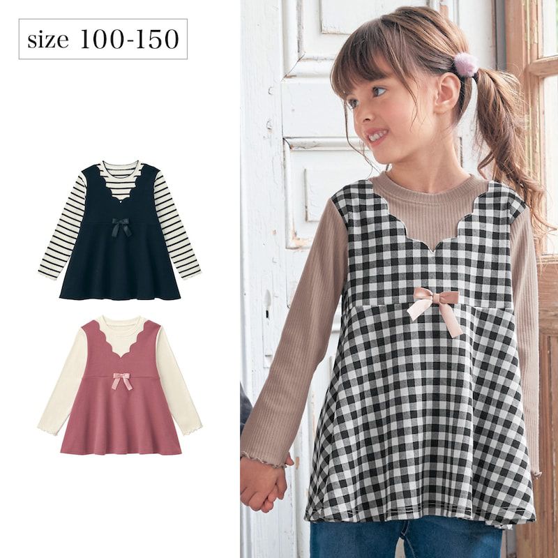 日本千趣會 - GITA 甜美貝殼領假二件長袖上衣-素面x格紋-淺駝x黑白