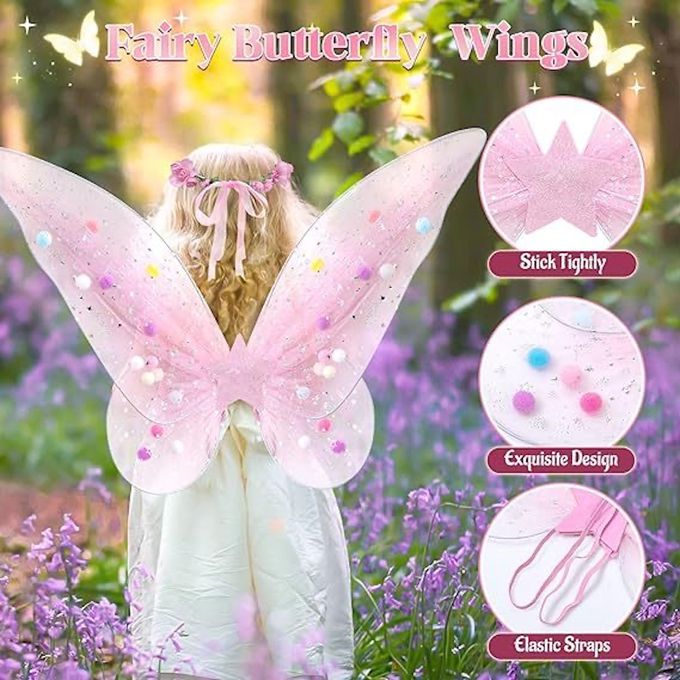 網紗毛毛球蝴蝶翅膀澎澎裙仙女棒三件套組