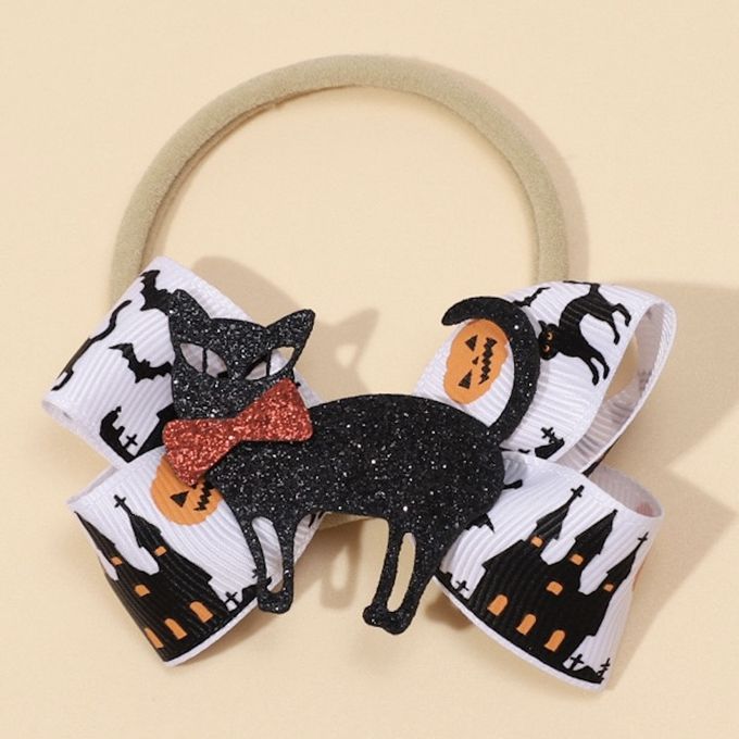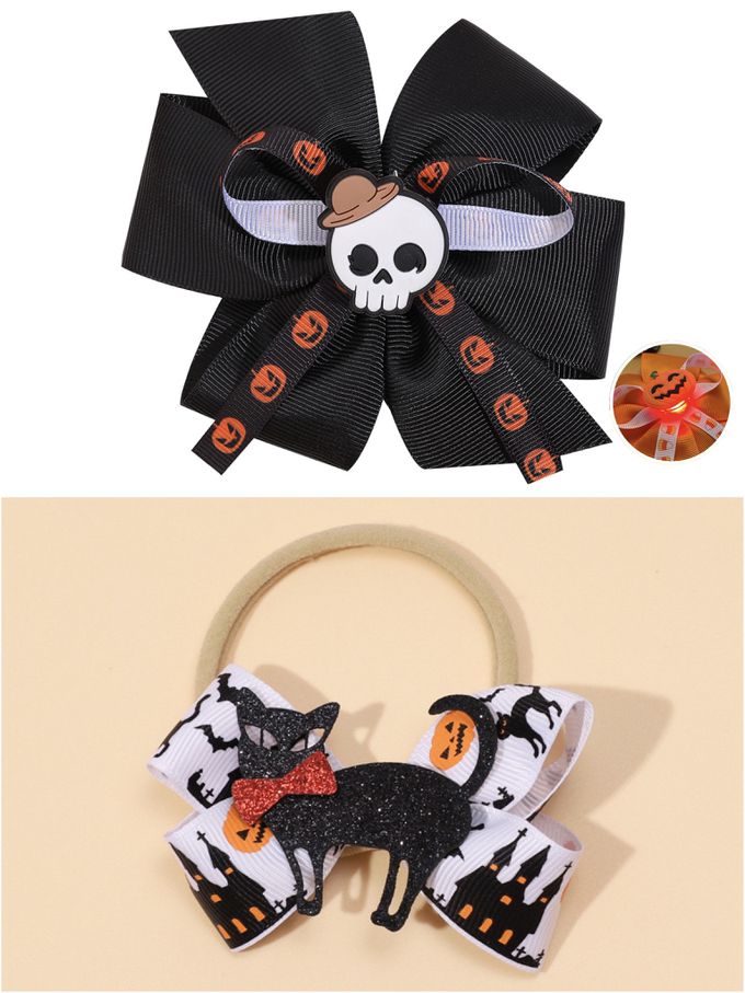 品名:萬聖節可愛骷髏帶燈髮夾配黑貓髮圈組