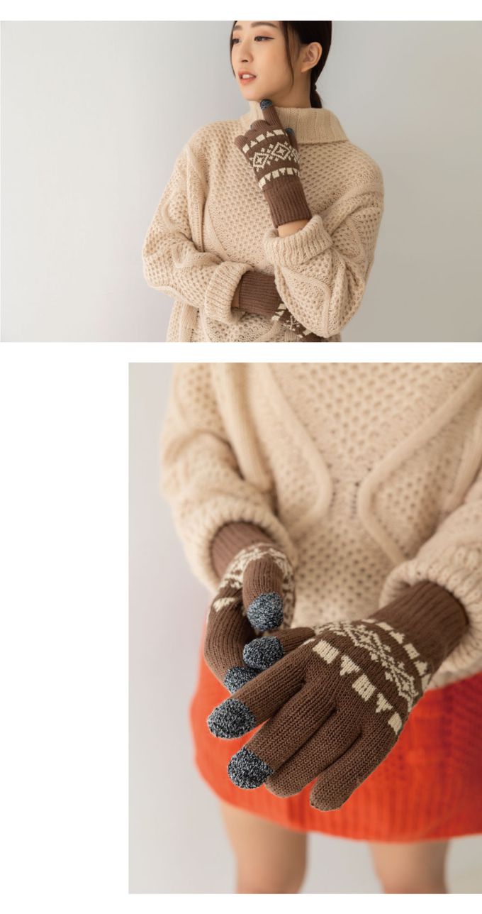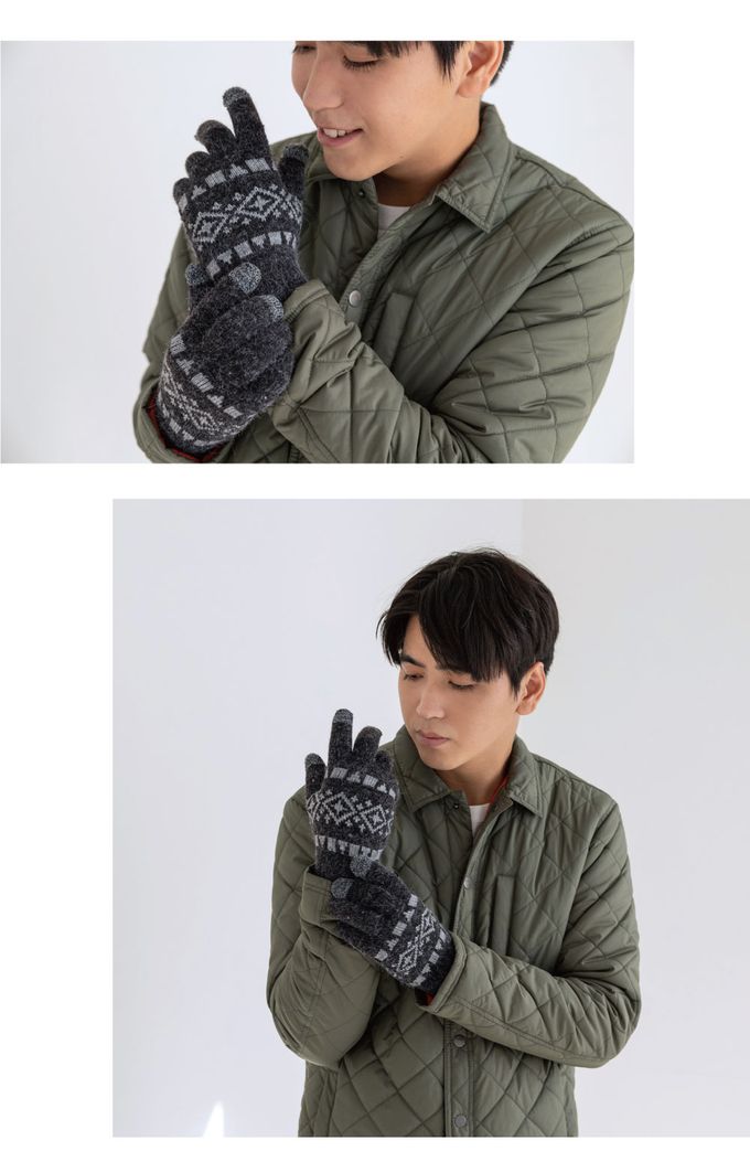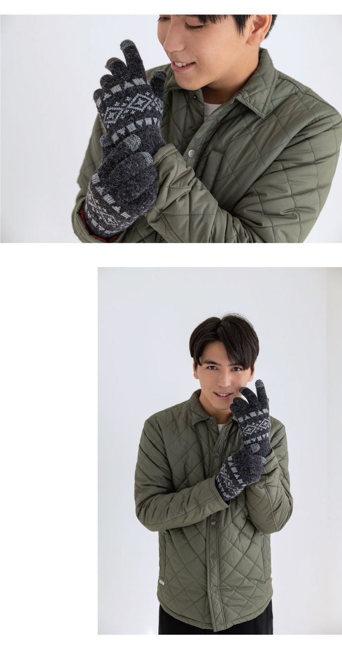 貝柔 Peilou - 毛線加絨觸控手套-喵喵-灰