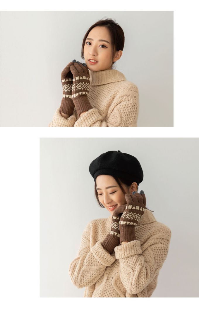 貝柔 Peilou - 毛線加絨觸控手套-躲貓貓-藍