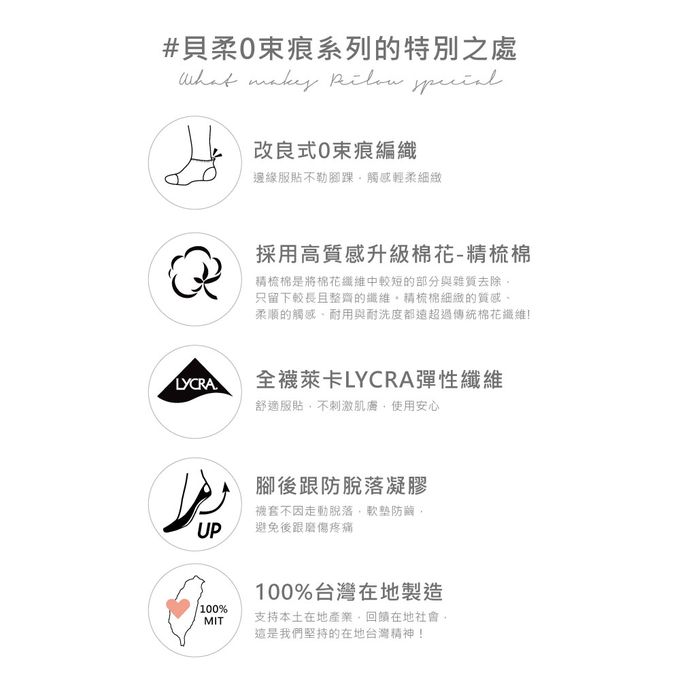 品名:貝柔0束痕柔棉止滑襪套-素色(6雙組)
