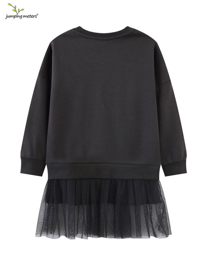 Jumping meters - 棉質圓領長袖連身網紗洋裝-亮片彩虹-灰+橘粉