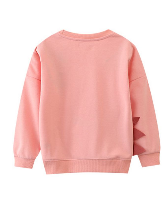 棉質圓領長袖上衣/大學T-立體恐龍-粉橘色