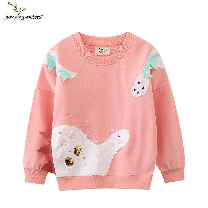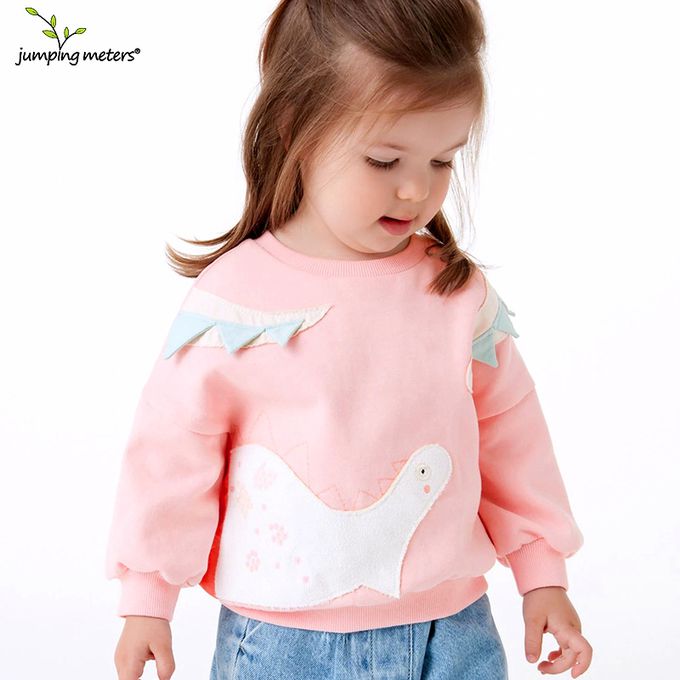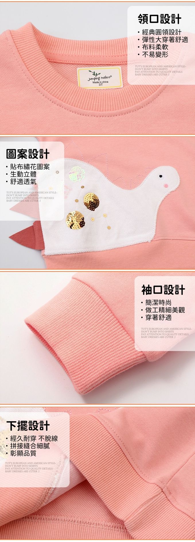 Jumping meters - 棉質圓領長袖上衣/大學T-花花恐龍-粉色