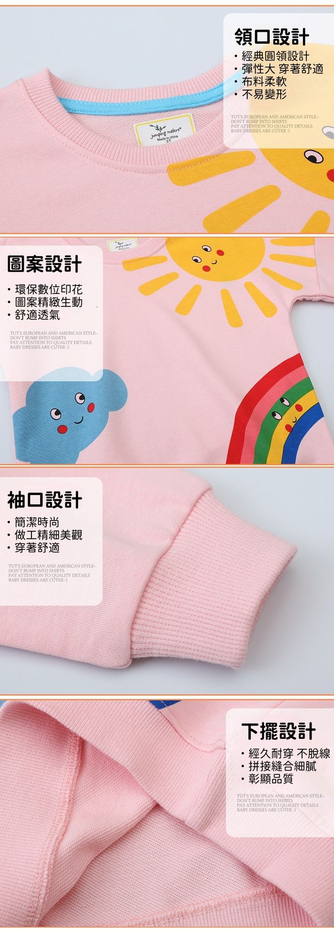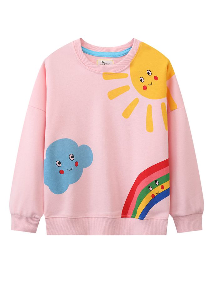 棉質圓領長袖上衣/大學T-太陽雲朵彩虹-粉色