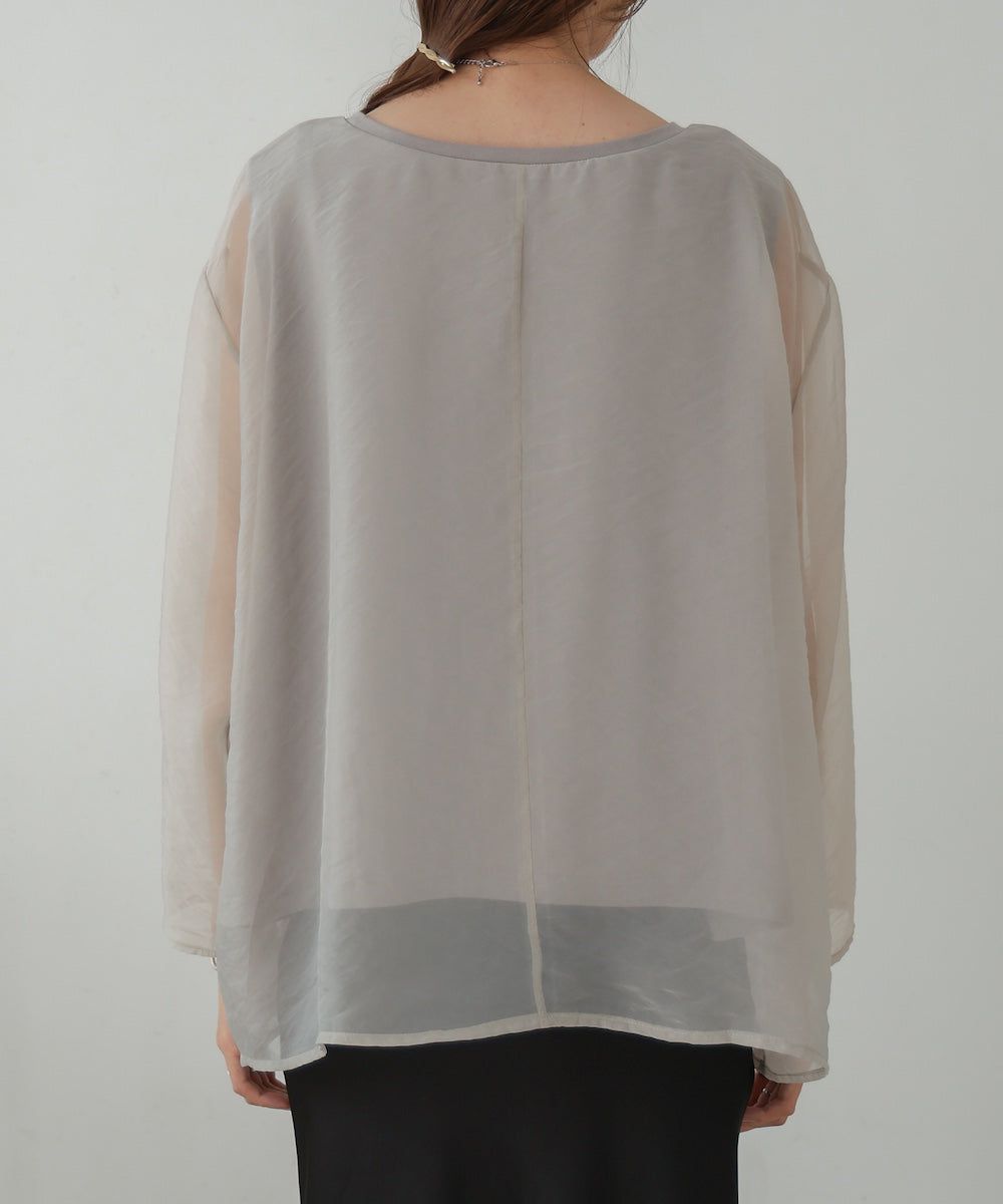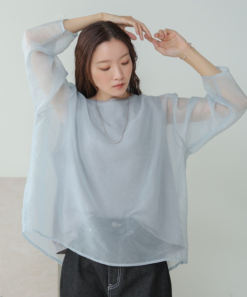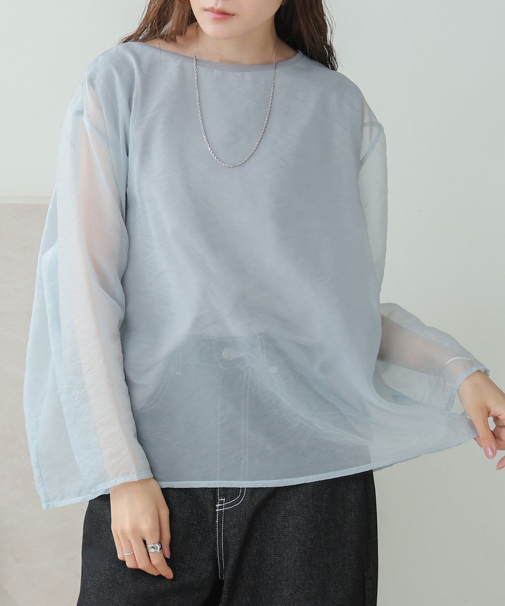 [推薦]透膚薄紗層次船領長袖上衣