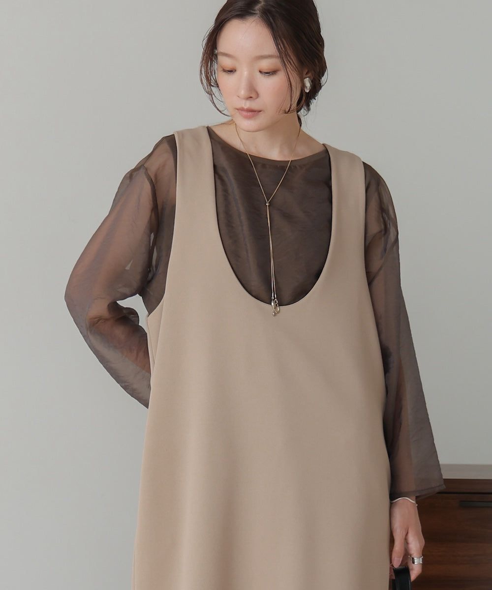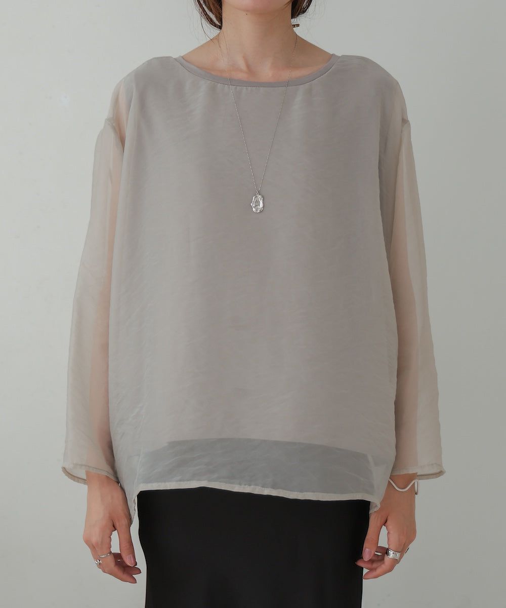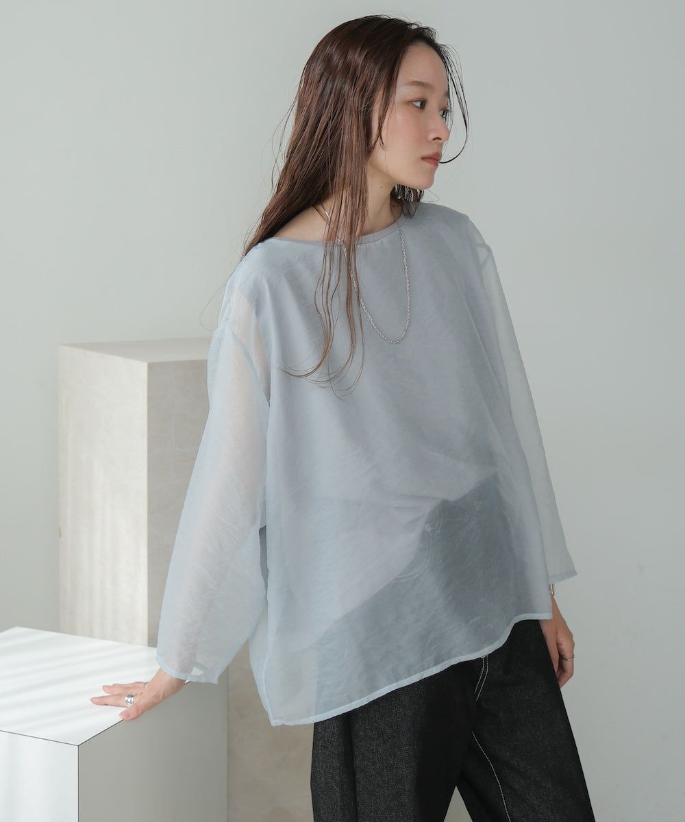 [推薦]透膚薄紗層次船領長袖上衣
