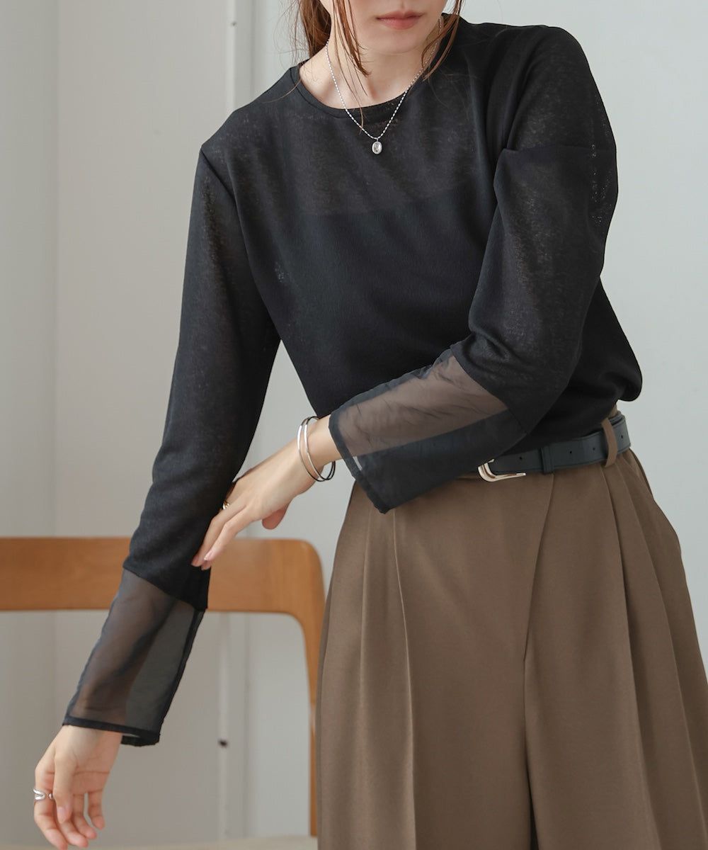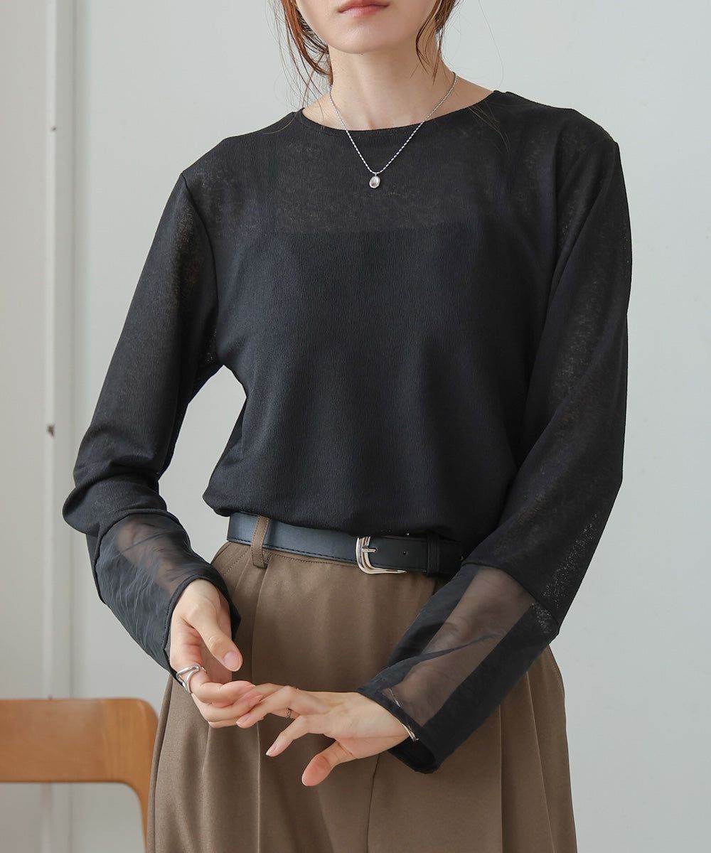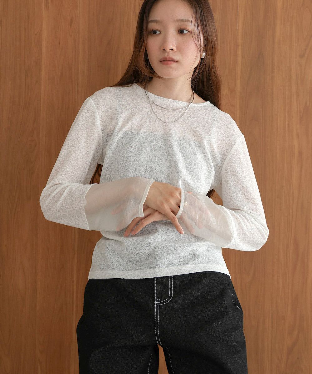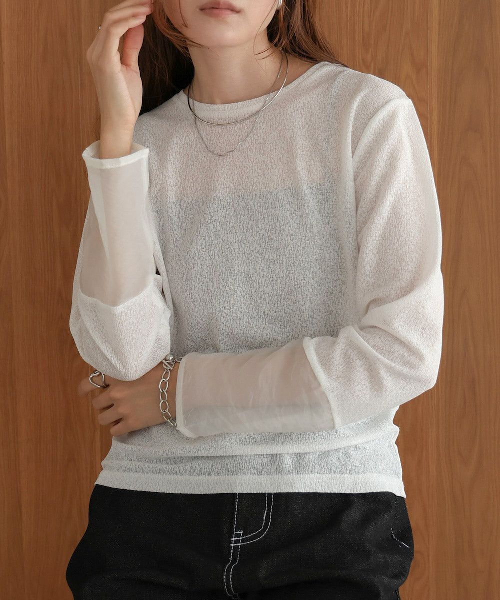 低調透膚感柔軟長袖上衣