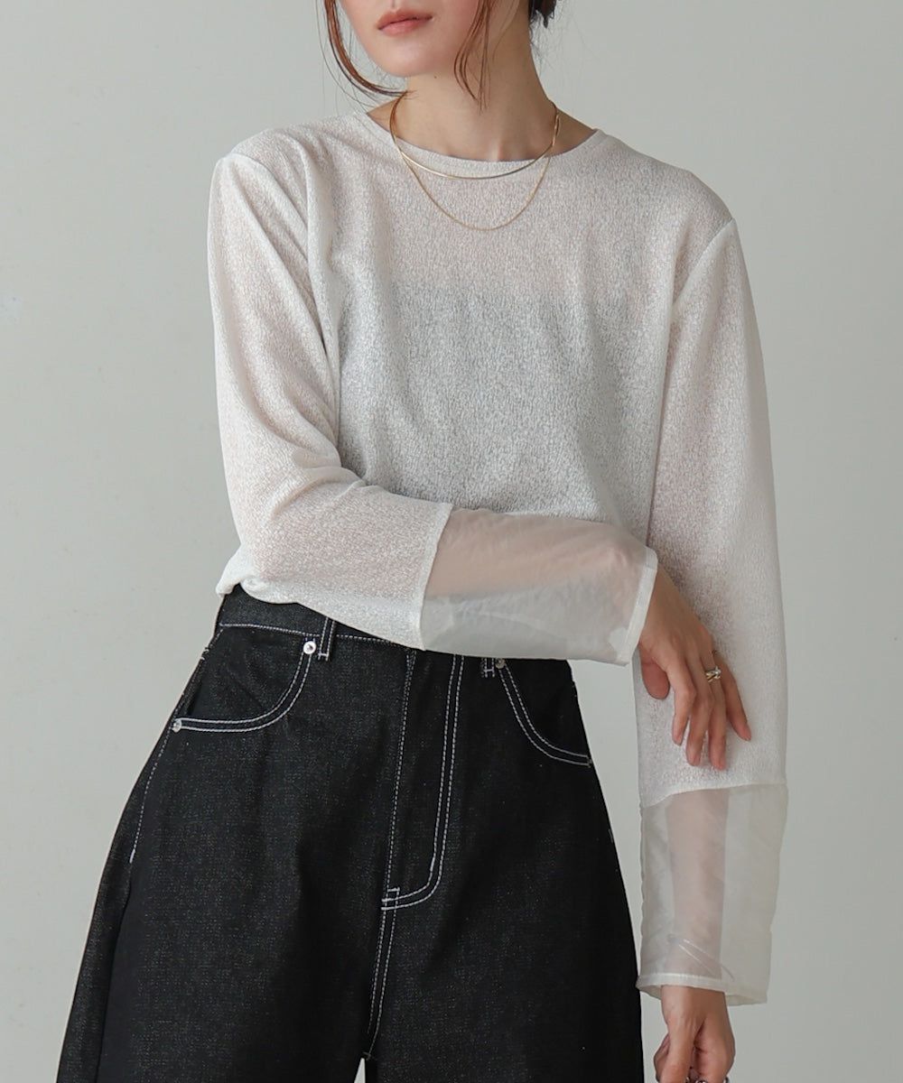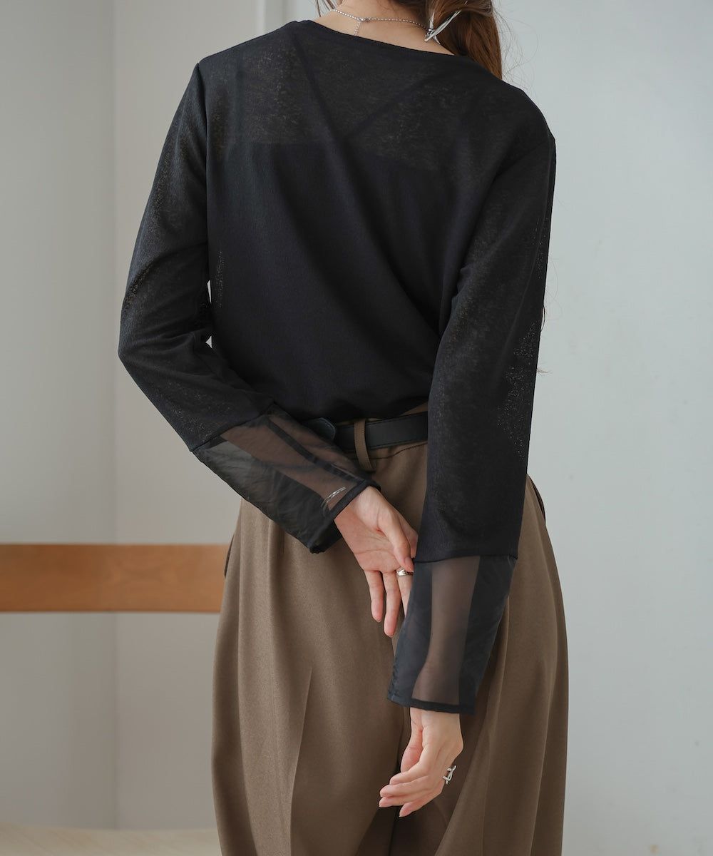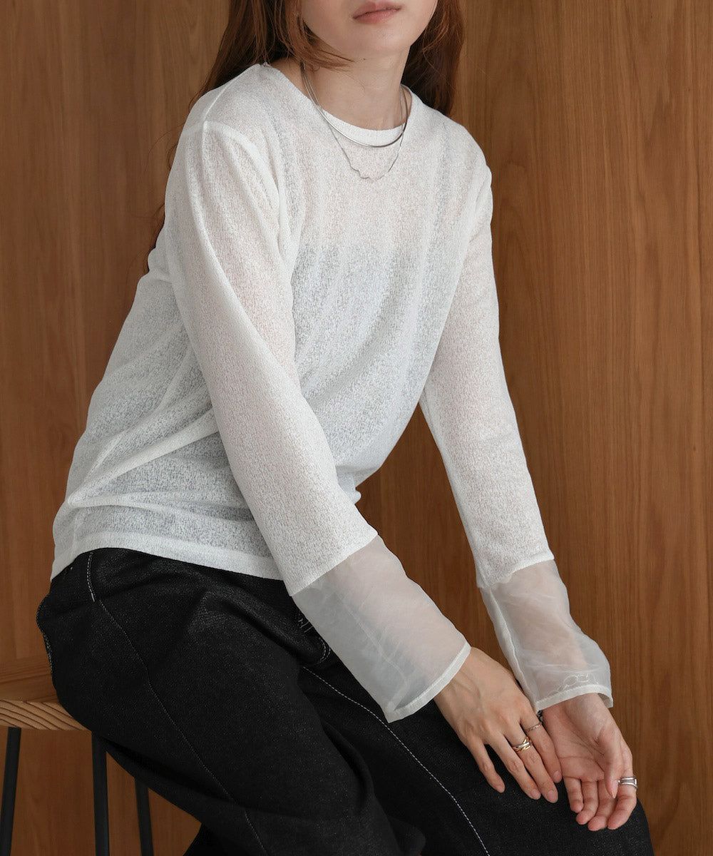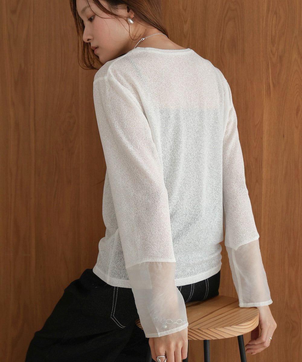 低調透膚感柔軟長袖上衣