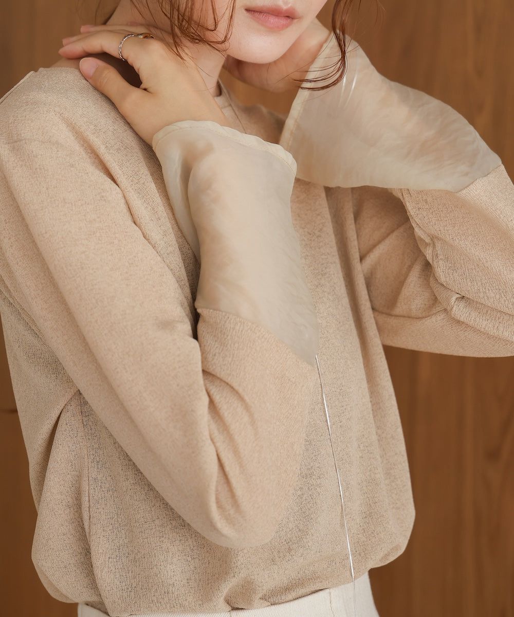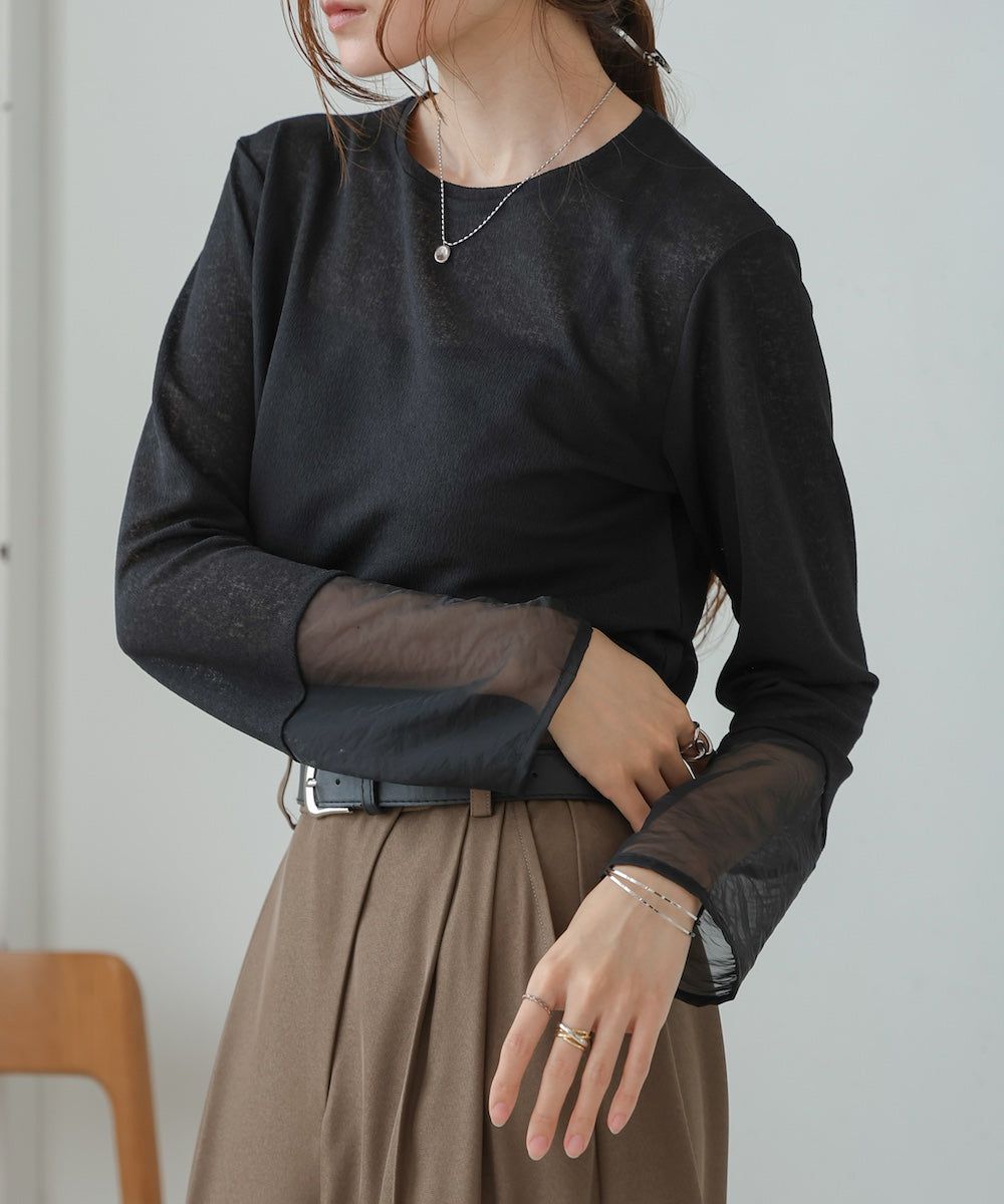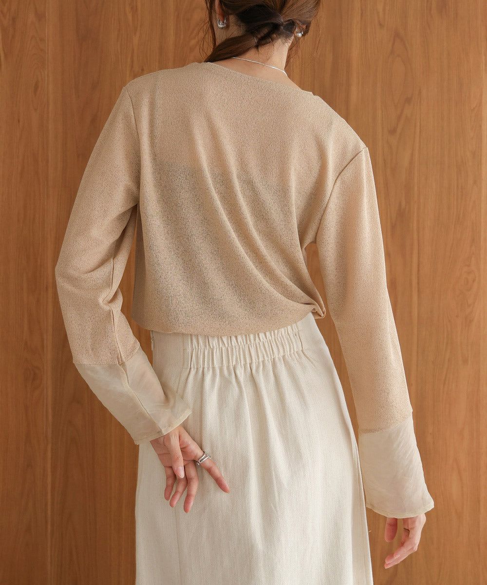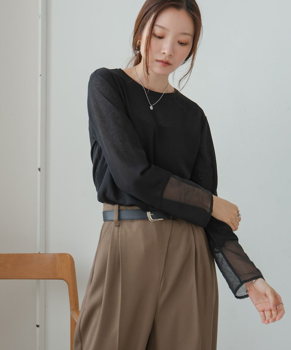 低調透膚感柔軟長袖上衣
