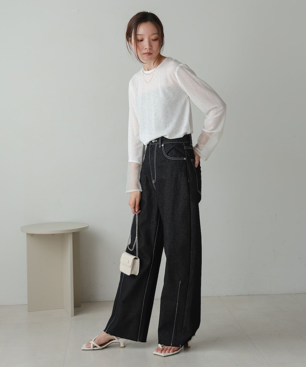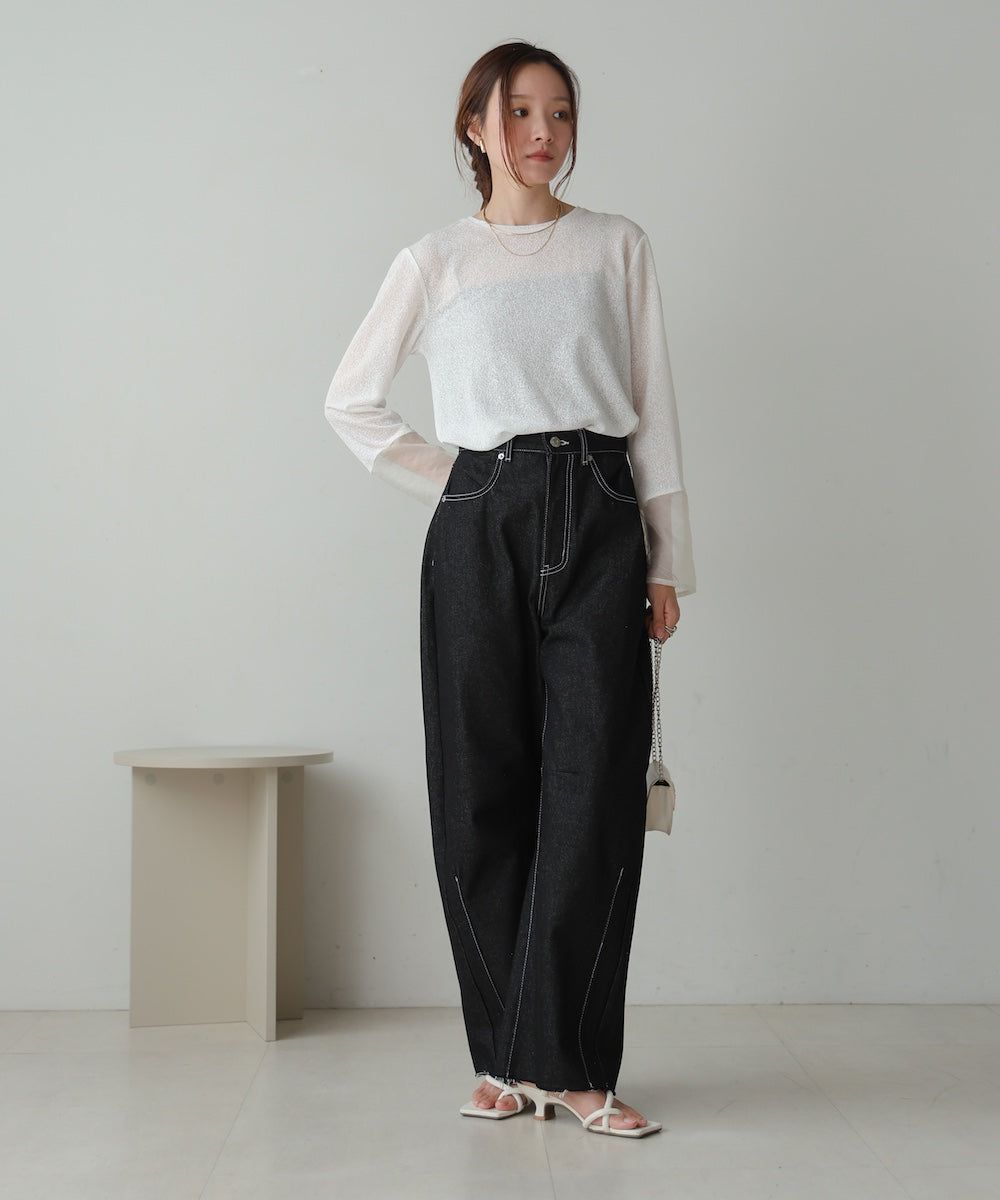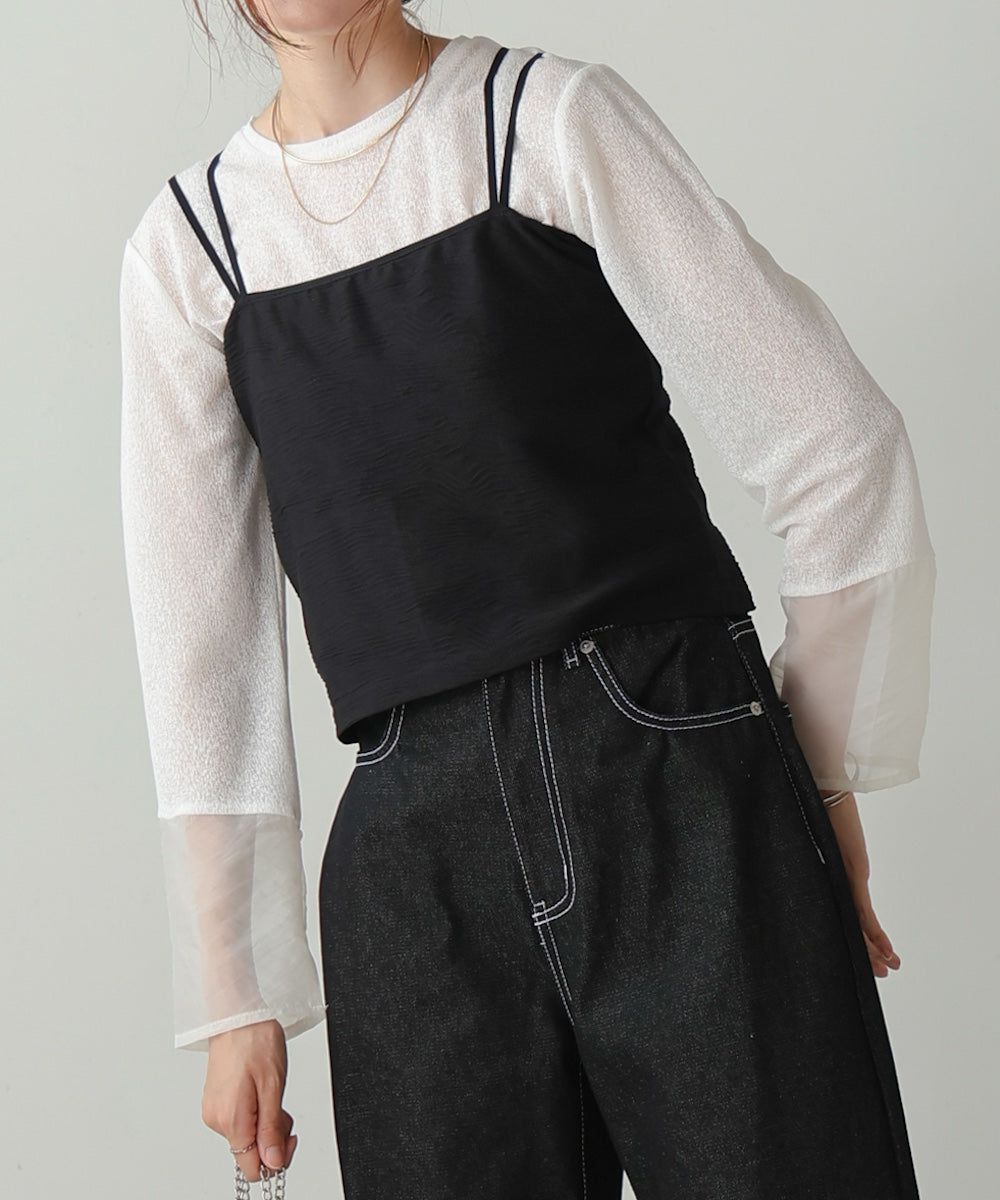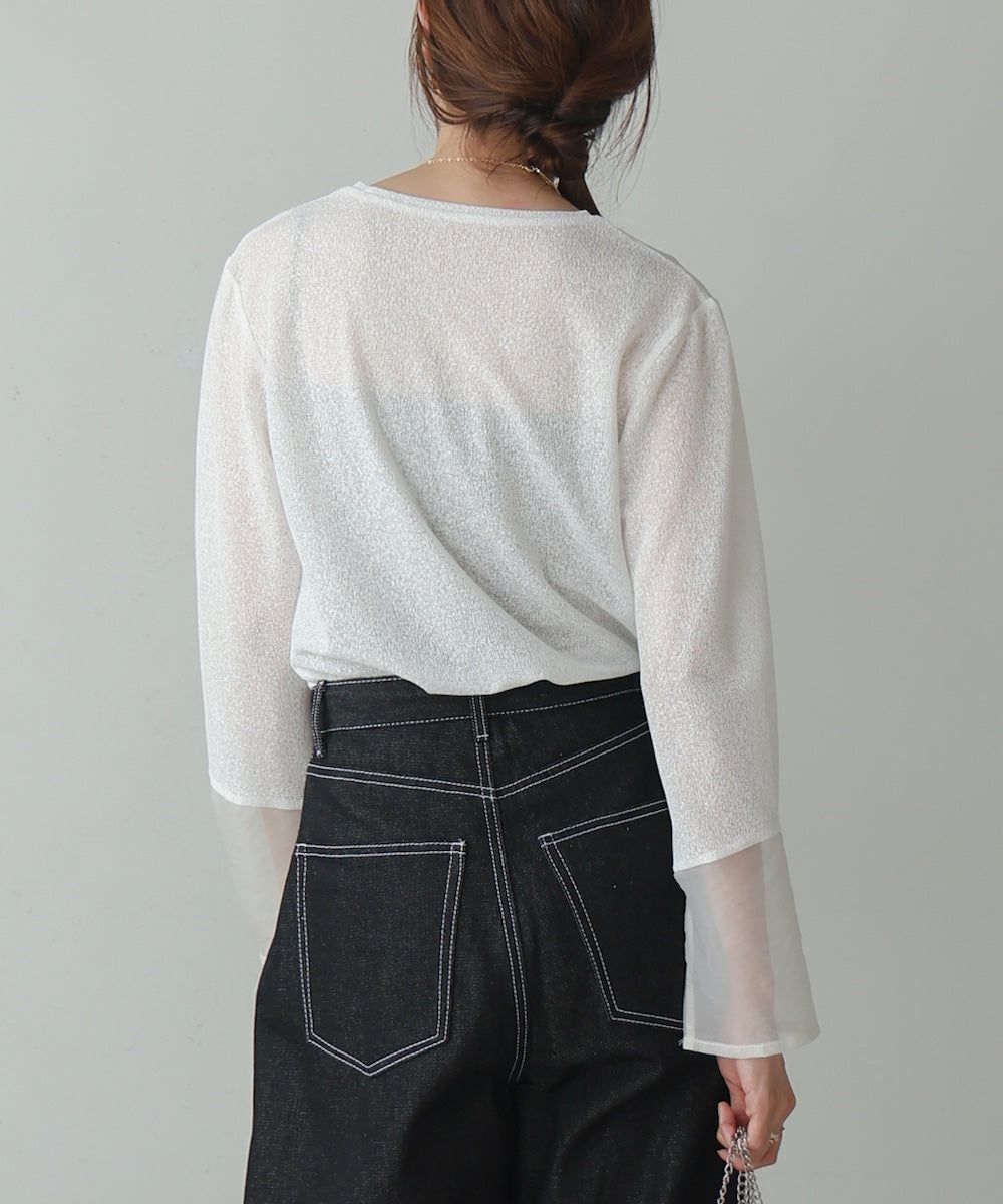 低調透膚感柔軟長袖上衣