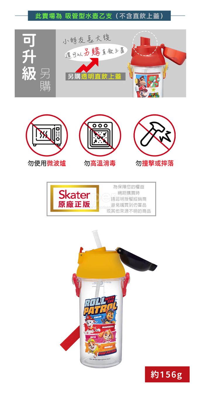 注意事項:●請勿置入於微波爐,洗碗機,烘碗機及蒸汽消毒鍋使用,可能會導致產品變形或圖案剝落。 ●此為吸管型,請再度確認容量大小,為您所需要,再行購買。