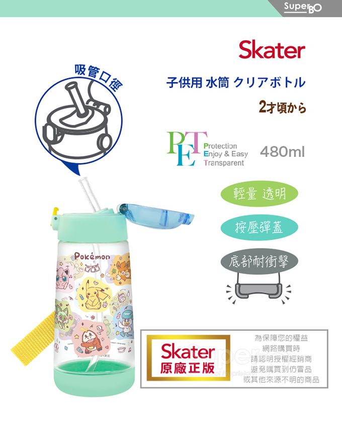 日本 SKATER - (透明)吸管水壺480ml PET-寶可夢