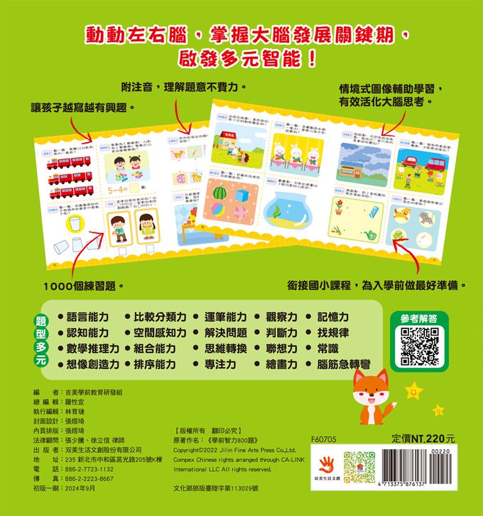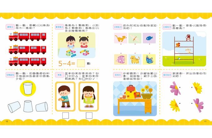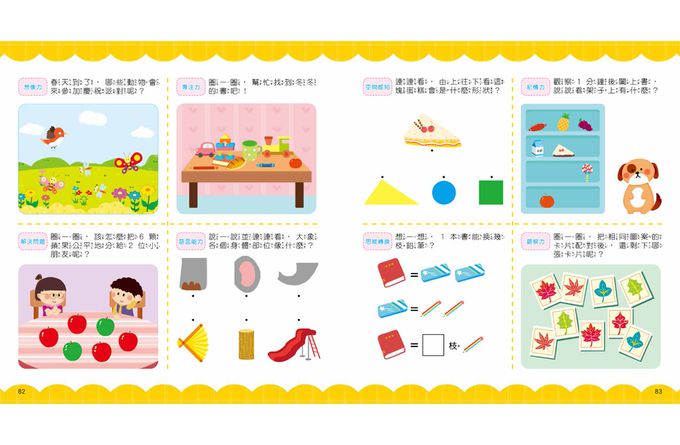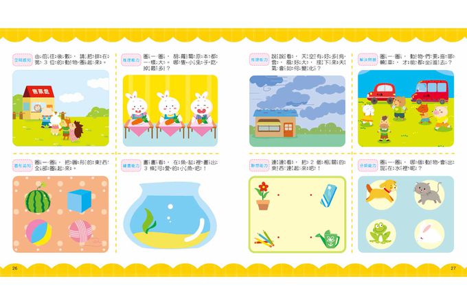 ◆解決問題能力:透過簡單並兼具趣味性與生活化的題型,培養孩子分析問題、思考解決方法的能力。