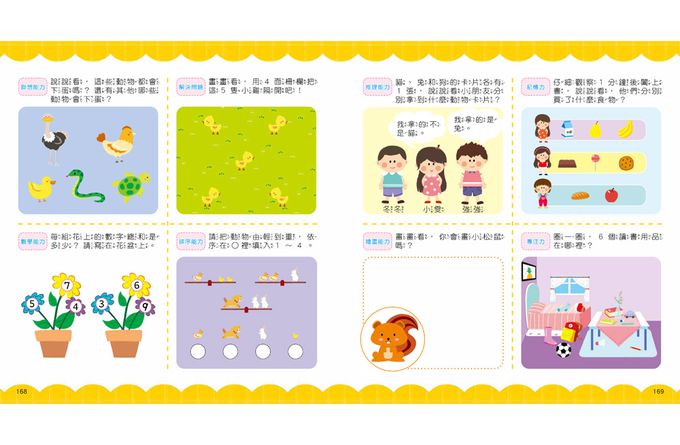◆記憶力:記憶圖中內容一分鐘,闔上書後仔細回想,幫助孩子鍛鍊記憶力!