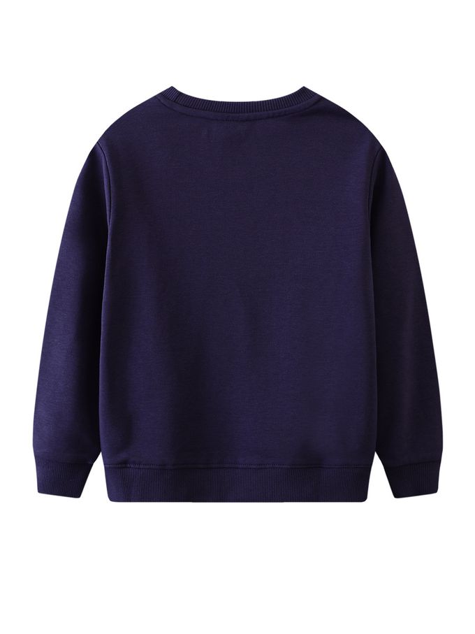 Jumping meters - 夜光圓領棉質長袖上衣/大學T-月球與長頸龍-深藍色