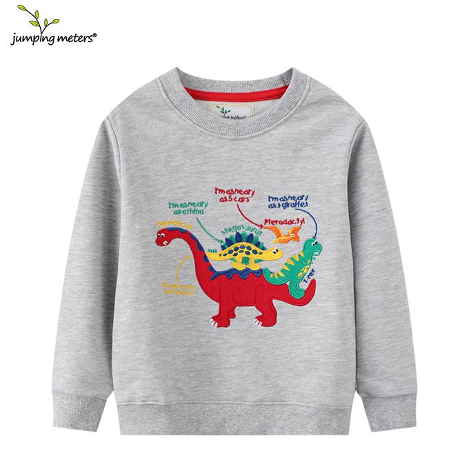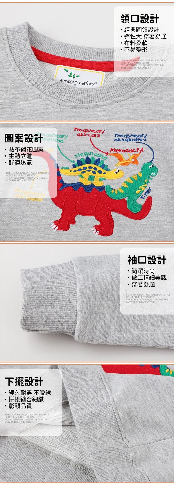 Jumping meters - 圓領棉質長袖上衣/大學T-插畫恐龍-灰色