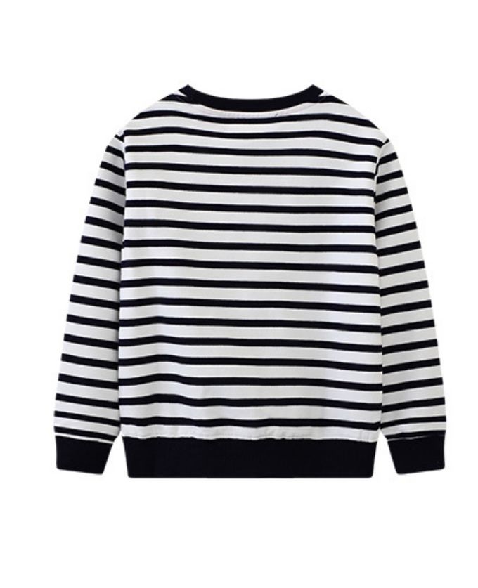 圓領棉質長袖上衣/大學T-工具車車-黑白條紋